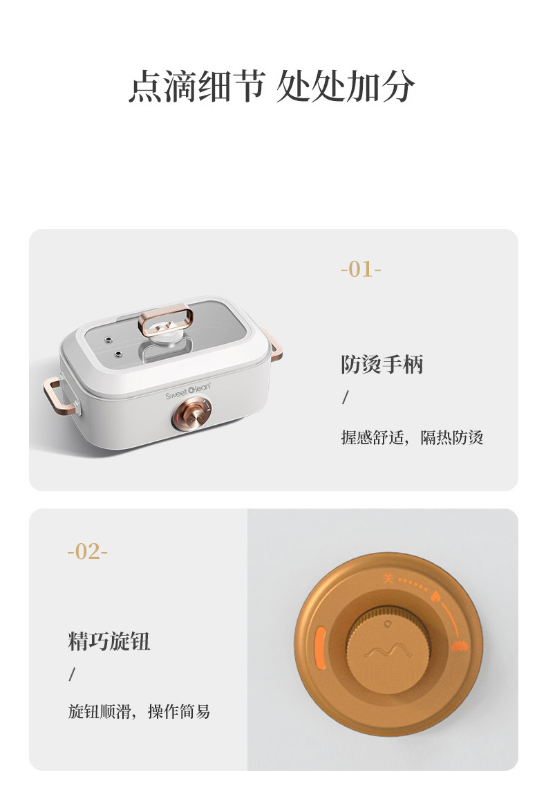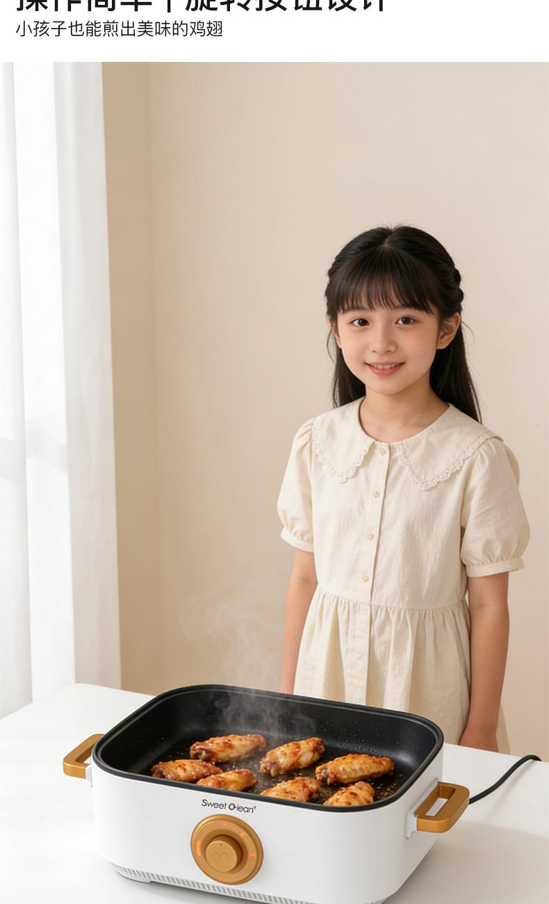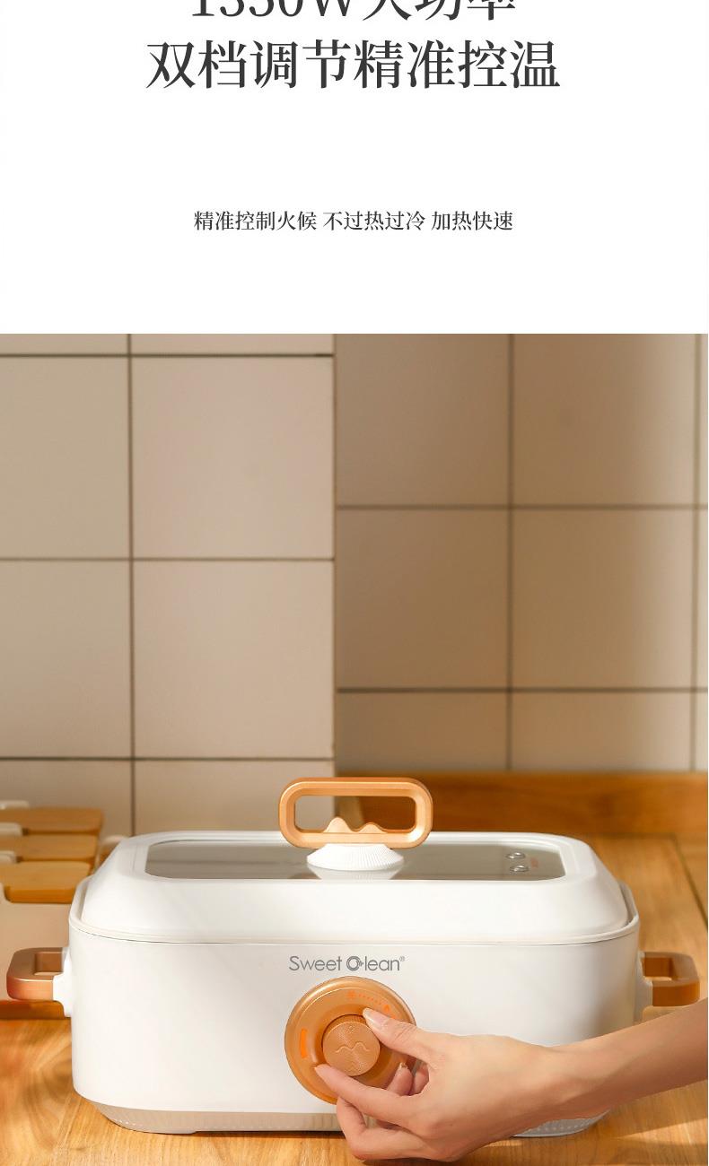 ?1350W 大功率:雙檔火力調(diào)節(jié),旋鈕操控簡單直觀,新手也能輕松掌握火候。