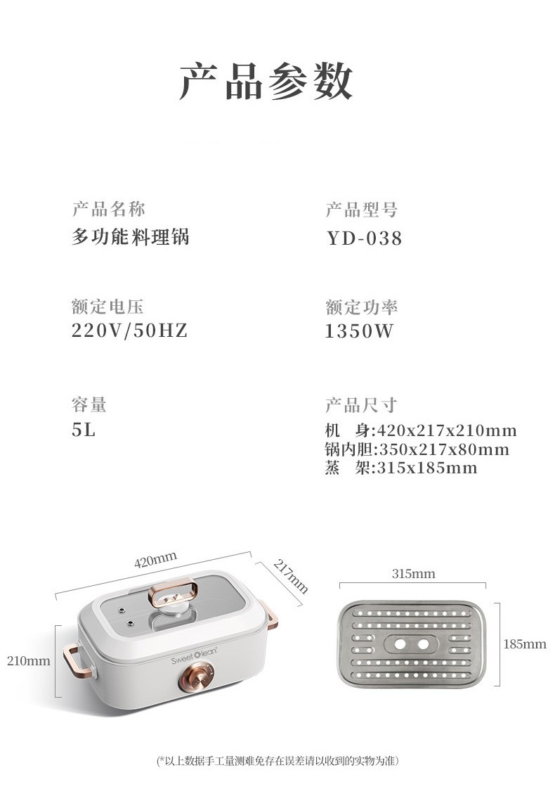 思薇科林多功能鍋料理鍋蒸煮炒煎多用途電火鍋YD-038