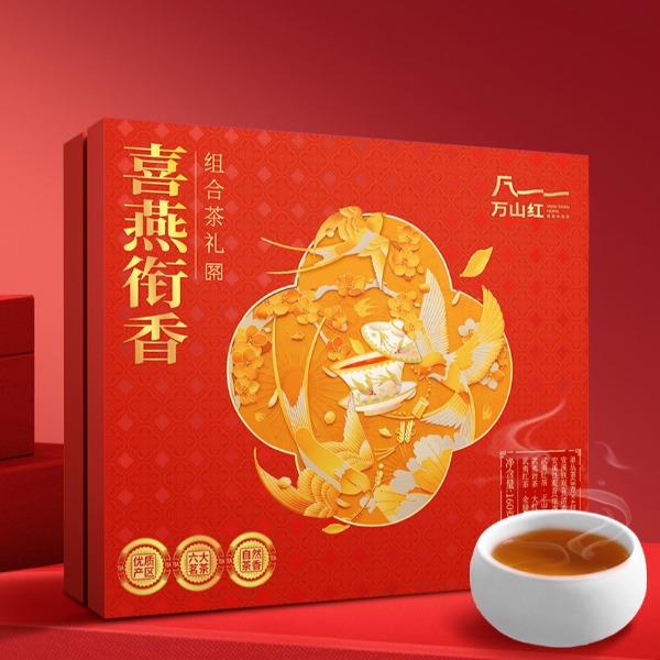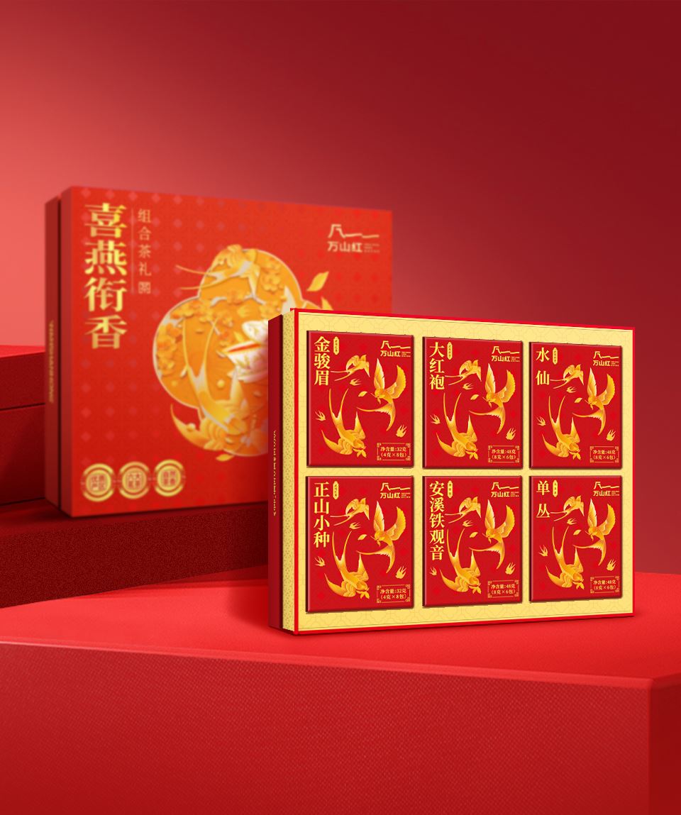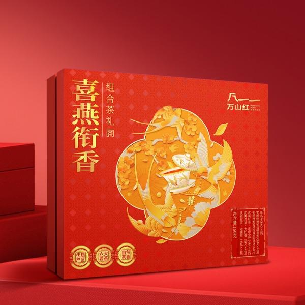 包裝喜慶適配禮贈(zèng):紅金主色調(diào) + 燕子、梅花等中式吉祥元素,氛圍濃厚,很適合節(jié)日、走親訪友等送禮場(chǎng)景。