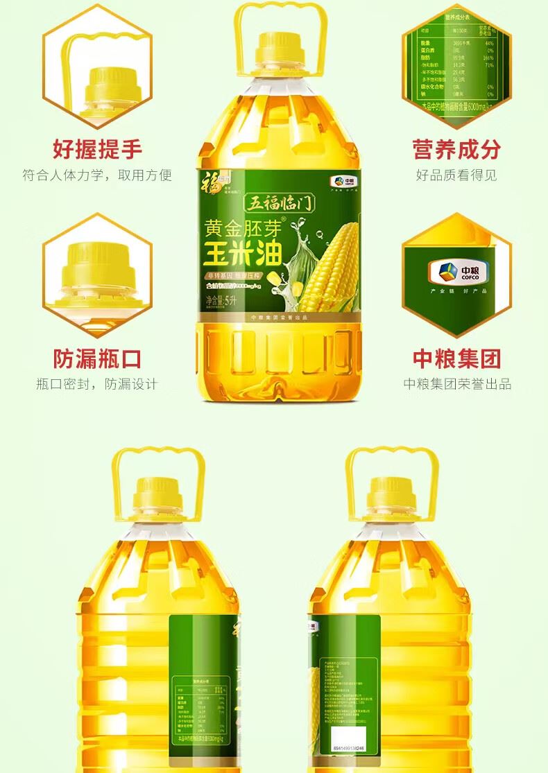 中糧福臨門五福臨門黃金胚芽玉米油5L 中糧福臨門五福臨門黃金胚芽玉米油5L