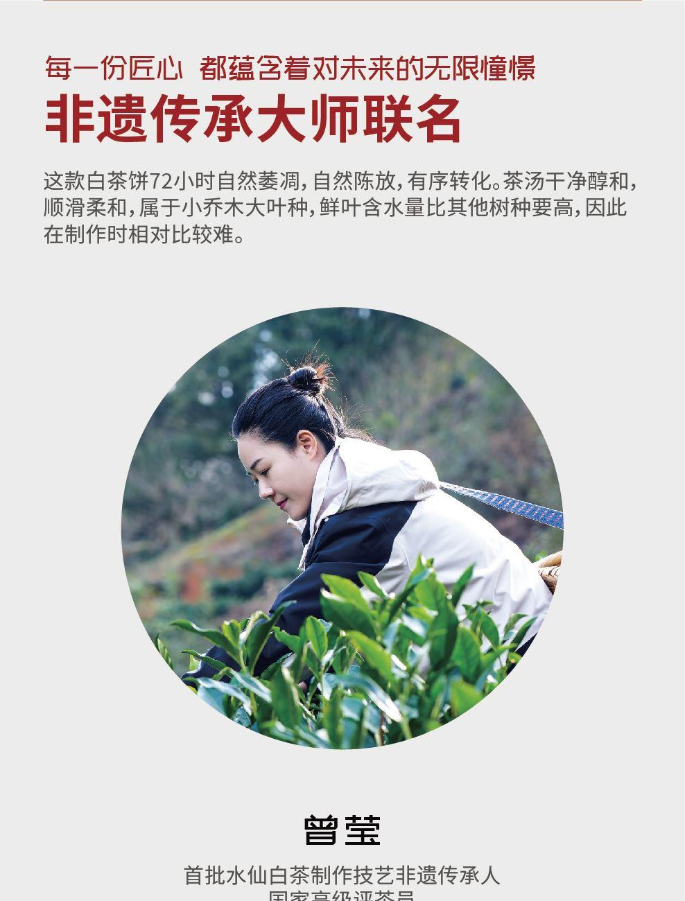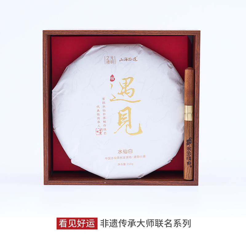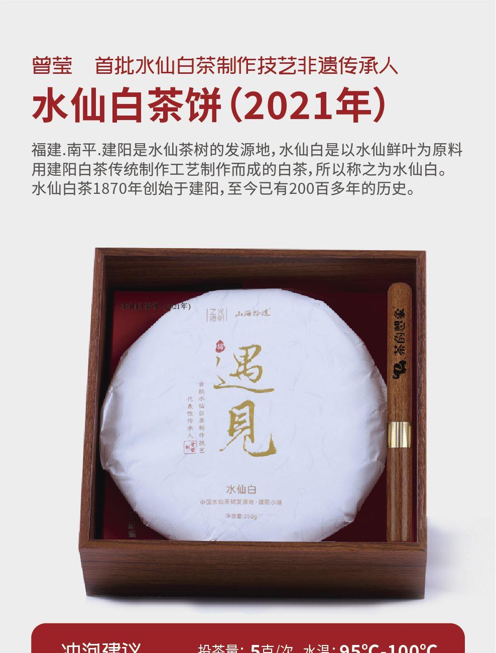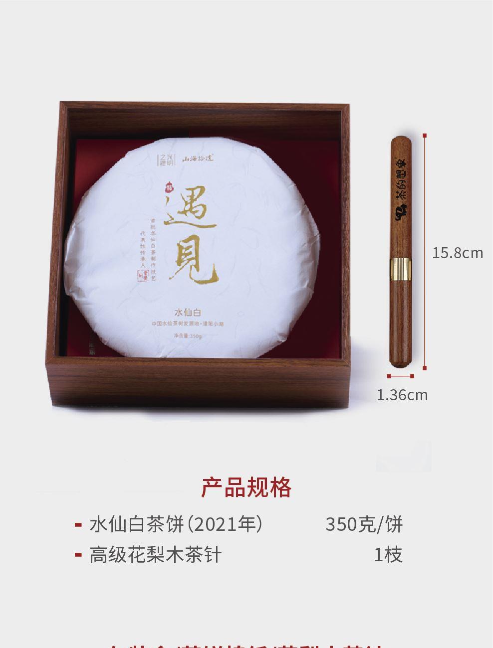 2021年水仙白茶餅(首批水仙白茶非遺大師曾瑩老師作) 規(guī)格:350克 花梨木茶針(15.8*1.36cm) 禮盒尺寸:21*21*7cm
