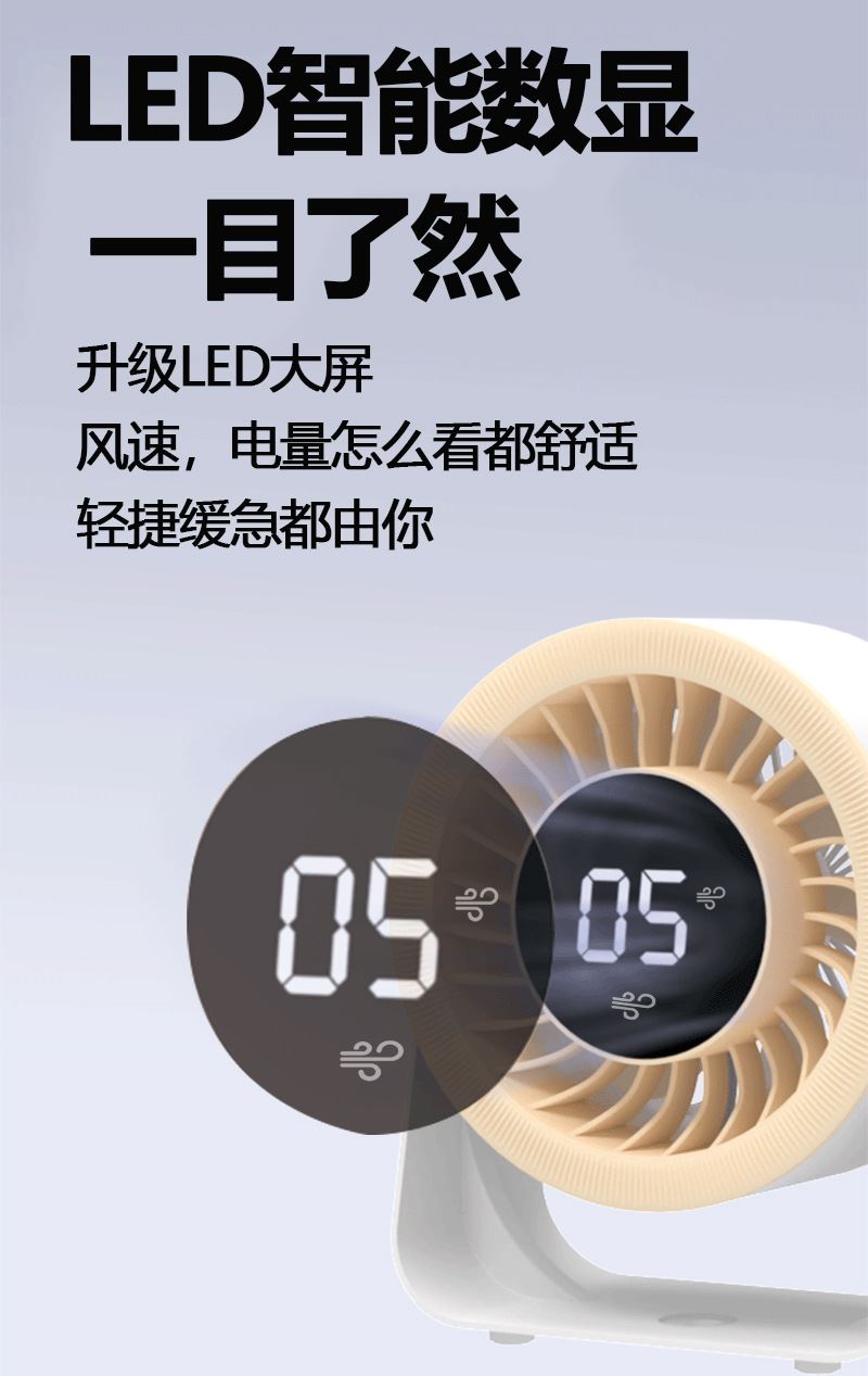 遙里遜數(shù)顯渦輪掛壁小臺扇桌面臺式USB電風(fēng)扇YLX-250