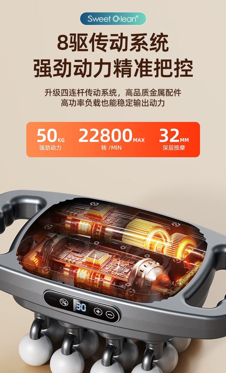 48KG 大推力搭配 8 驅(qū)傳動系統(tǒng),動力輸出穩(wěn)定且可控,能輕松穿透表層肌肉,直擊深層肌群痛點,告別淺層按摩的 “表面功夫”,快速瓦解頸肩腰背的頑固緊繃感。
