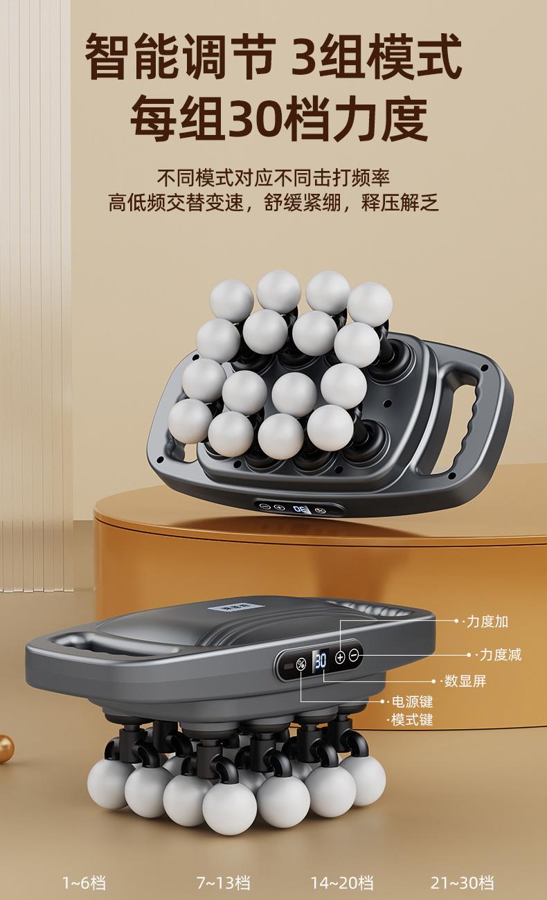 內(nèi)置 3 組專屬按摩模式,每組模式下配備 30 檔力度調(diào)節(jié),不同模式對應(yīng)不同擊打頻率,可根據(jù)肩頸、腰背、四肢等不同部位的耐受度,以及放松、釋壓、恢復等不同需求,匹配專屬方案,全家都能找到舒適節(jié)奏。搭載高能耐用電芯,一次充電可滿足多次高頻使用,無需頻繁找插座,不管是居家躺臥放松、辦公室工位舒緩,還是出差旅行隨身帶,都能開啟按摩 “續(xù)命” 模式,續(xù)航無焦慮。