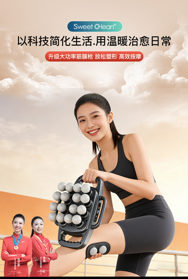 峰值可達 32800 轉(zhuǎn) / 分鐘的高頻率震動,結(jié)合高低頻交替變速技術(shù),模擬專業(yè)按摩師的輕重捶打手法,層層松解肌肉粘連,快速釋放運動后乳酸堆積,緩解日常久坐久站帶來的肌肉酸脹。