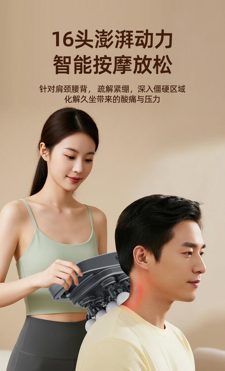 16 頭多維按摩矩陣,實現(xiàn)大范圍肌群包裹式按摩,無論是肩頸、腰背、大腿還是小腿,都能做到無死角貼合,告別傳統(tǒng)按摩儀 “局部照顧不到” 的弊端,全身肌群都能享受到深度舒緩。