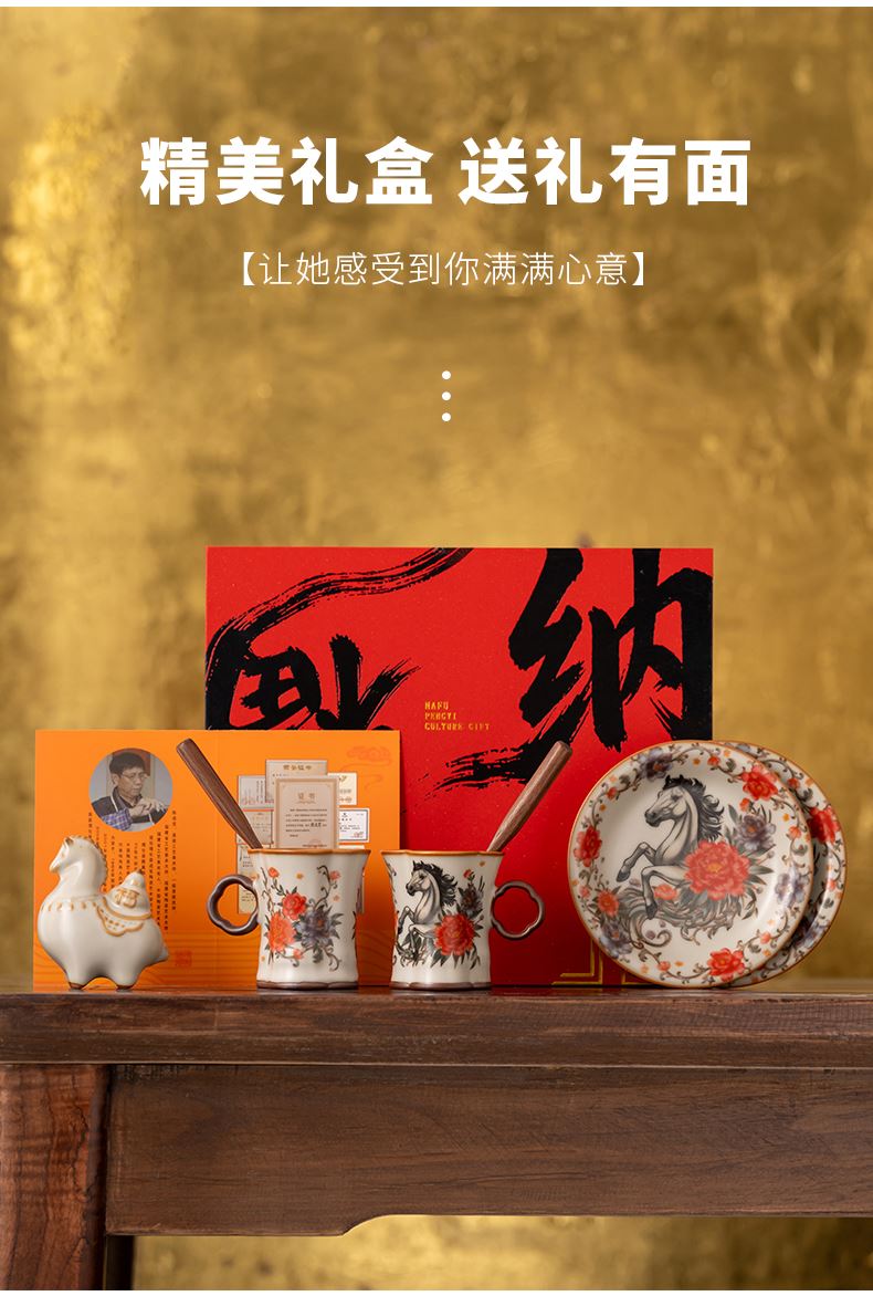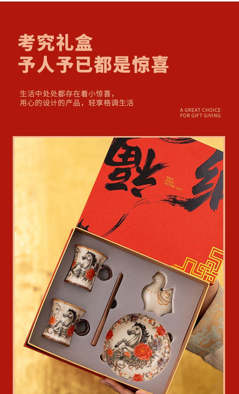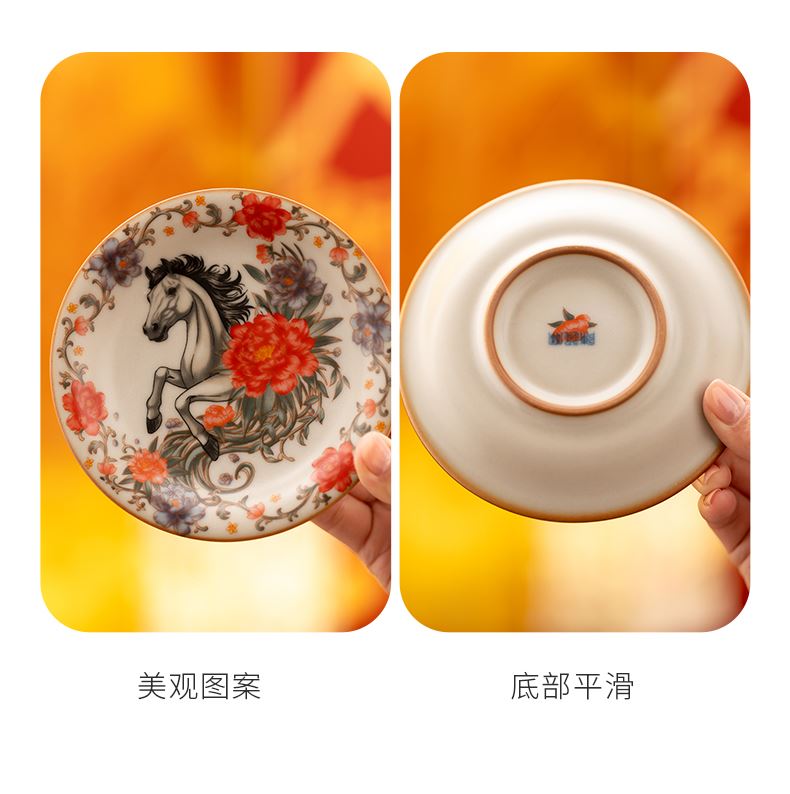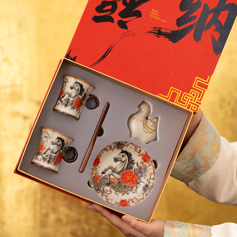 鵬翼馬年開(kāi)門(mén)紅納福馬上有錢(qián)、馬到成功雙杯盤(pán)擺件 禮品已成功加入PPT!