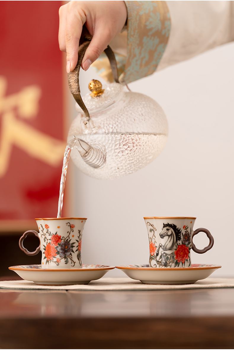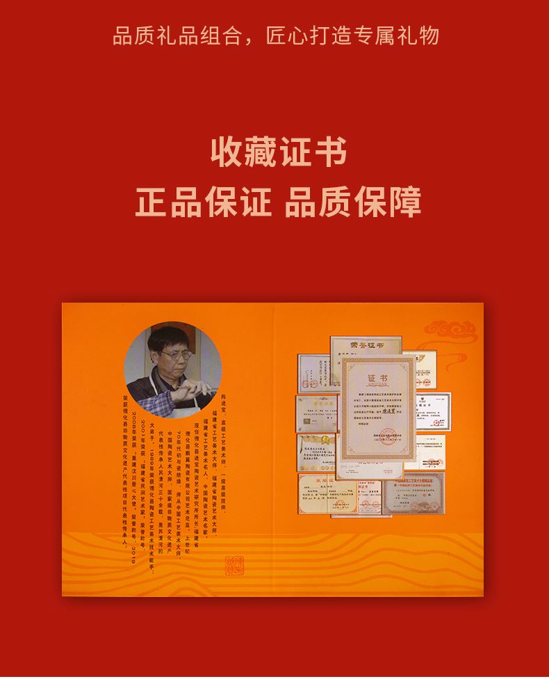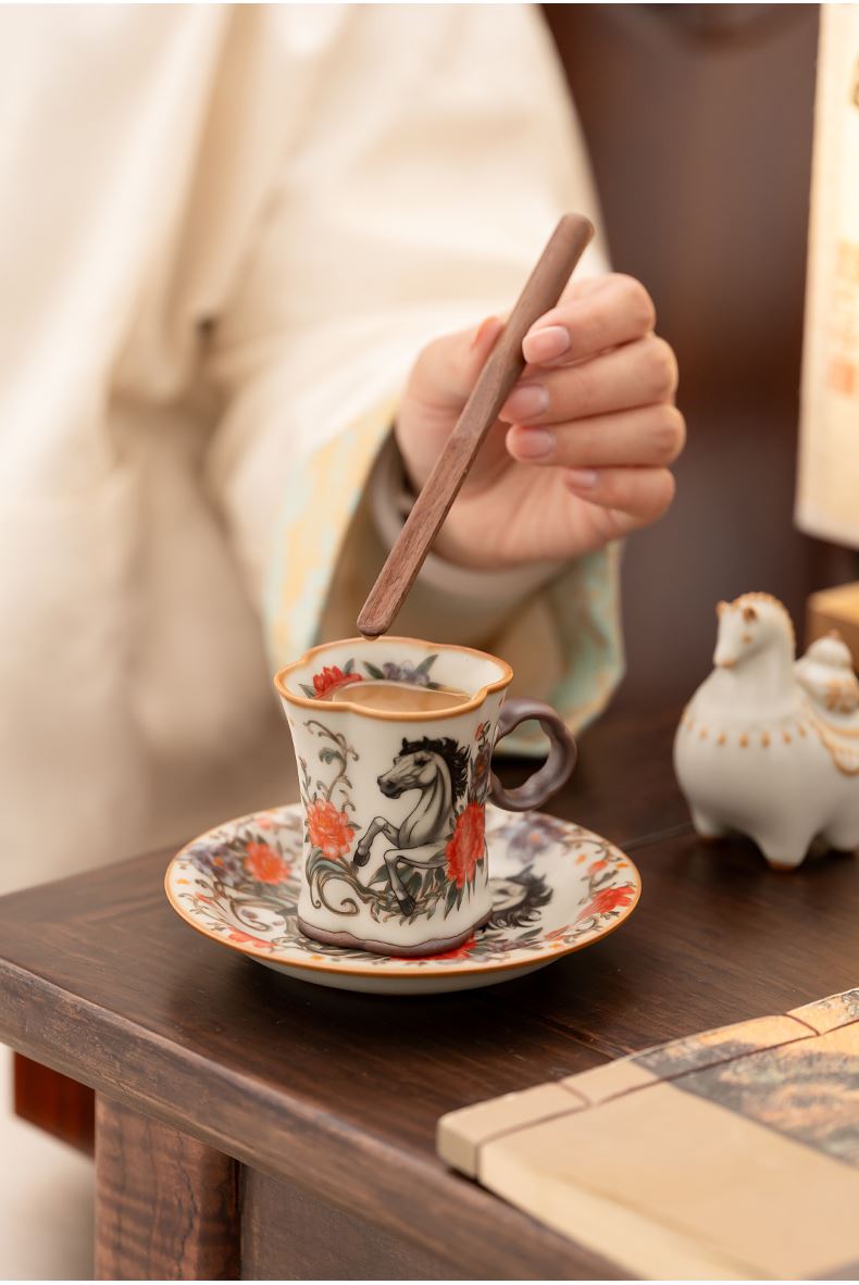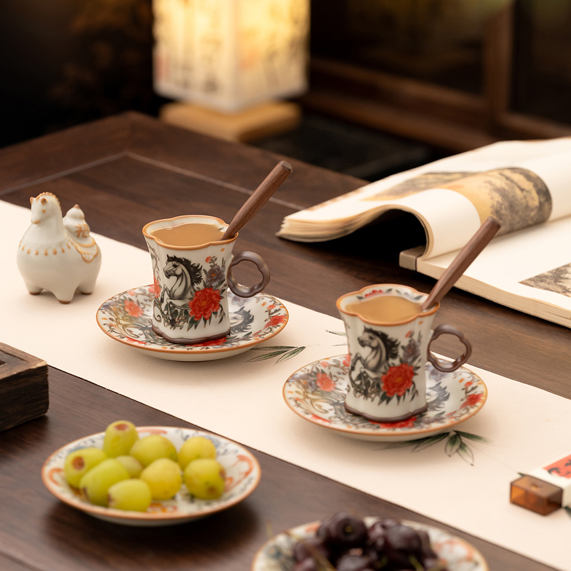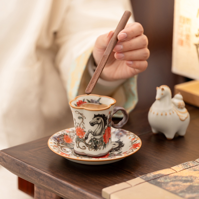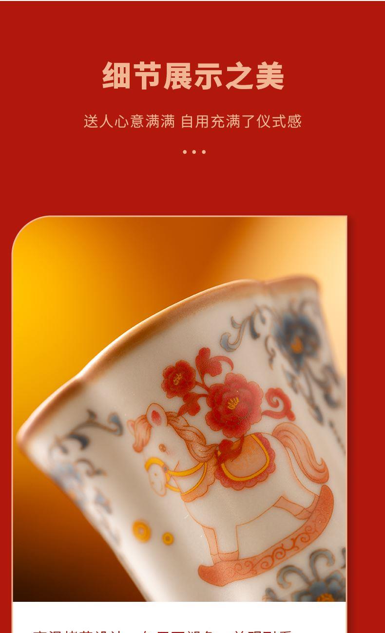 配 制:2杯 2盤(pán) 2實(shí)木攪拌棒 1擺件 1收藏證書(shū) 1禮盒 手提袋 材質(zhì):汝黃瓷 胡桃木 規(guī)格:杯子8.8*7.3cm 碟子直徑13.5cm高2.2cm 擺件9.3*7cm 容量:杯子70ml 推薦說(shuō)明:馬年開(kāi)門(mén)紅禮品,馬上有錢(qián),馬到成功杯子擺件套裝,馬背上葫蘆造型,寓意福祿,2盤(pán)精美大氣。亞黃汝瓷,瑪瑙入釉,蟬翼開(kāi)片,內(nèi)外皆有花面,家有千財(cái)萬(wàn)貫,不如汝窯一片。技術(shù)新品。畫(huà)面堆料技術(shù),富有立體浮雕質(zhì)感,真實(shí)感強(qiáng)。杯身開(kāi)片,可養(yǎng)瓷。