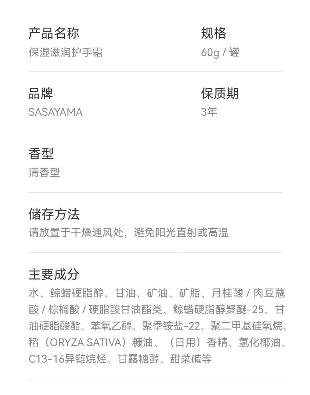 10. 日本SASAYAMA保濕滋潤護手霜60g