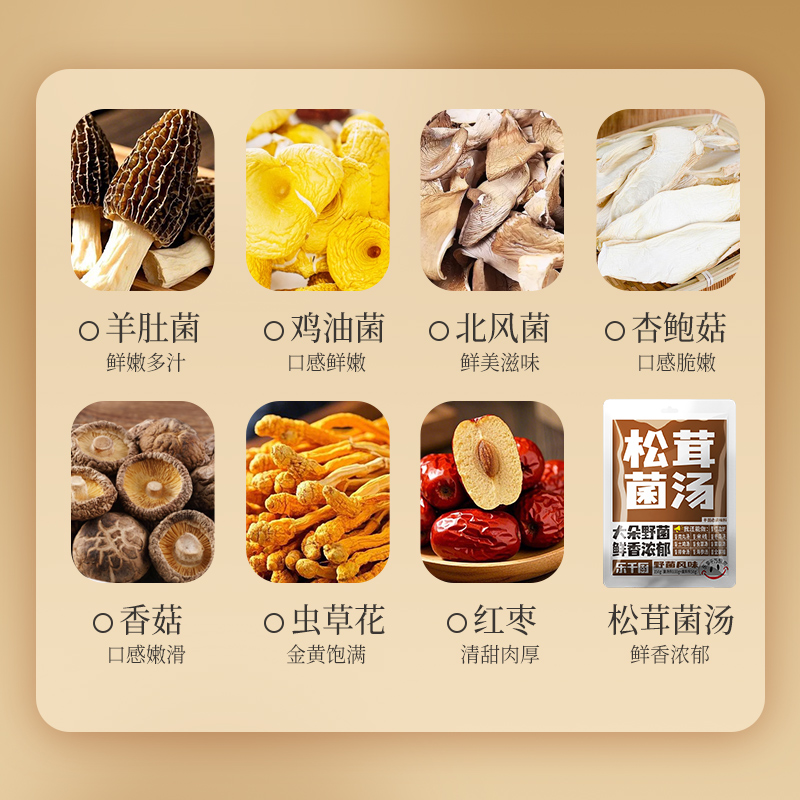 蟲(chóng)草花、雞油菌、香菇、150g松茸菌湯