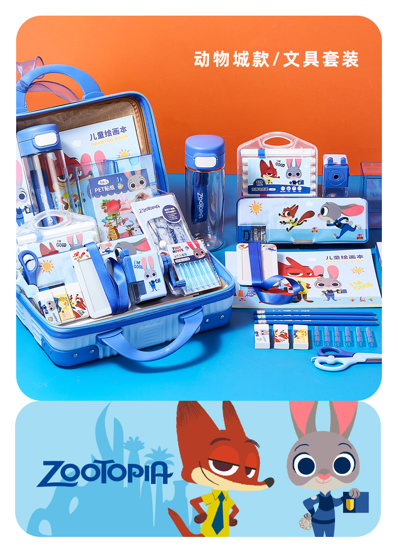 迪士尼瘋狂動(dòng)物城兒童開(kāi)學(xué)手提大禮包學(xué)習(xí)文具禮盒A90214