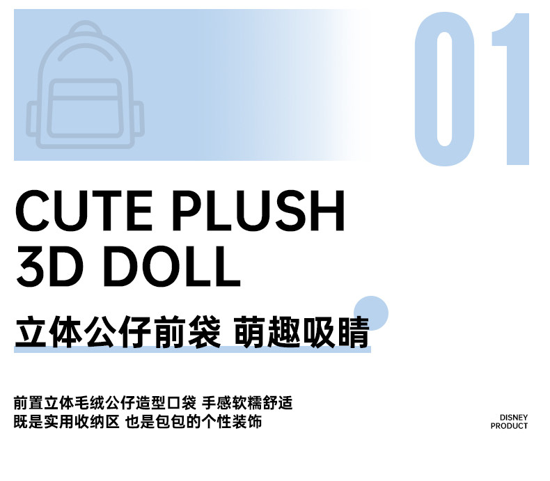 ③前置立體毛絨公仔造型口袋 手感軟糯舒適既是實(shí)用收納區(qū)也是包包的個(gè)性裝飾