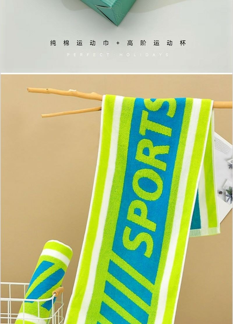 純棉運(yùn)動(dòng)巾時(shí)尚外觀設(shè)計(jì) 靚麗配色 提花工藝體現(xiàn)運(yùn)動(dòng)與清涼視覺感受 優(yōu)質(zhì)精梳棉 適合運(yùn)動(dòng)的克重與規(guī)格設(shè)置