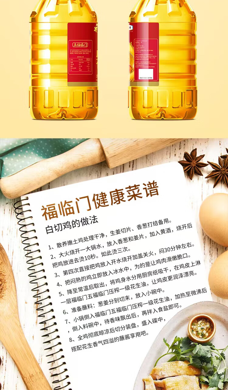 凈含量:5L 條形碼:6941499138185 開票稅率:9% 產(chǎn)品賣點: 壓榨一級醇香加倍:物理壓榨鎖鮮,花生原香濃郁持久,油體金黃透亮,煎炒烹炸樣樣香,提味增香更下飯 中糧央企嚴選原料:精選優(yōu)質(zhì)花生,多重質(zhì)檢把關,無添加更健康,5L 大容量滿足家庭長期烹飪需求,性價比高 五福臨門節(jié)慶優(yōu)選:寓意吉祥喜慶,大桶家庭裝適配日常與團圓宴,中糧全鏈可追溯,送禮自用兩相宜