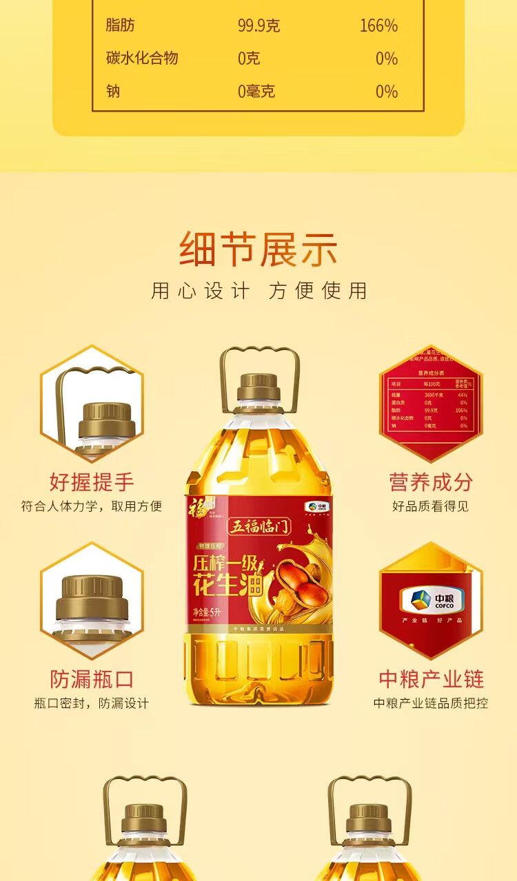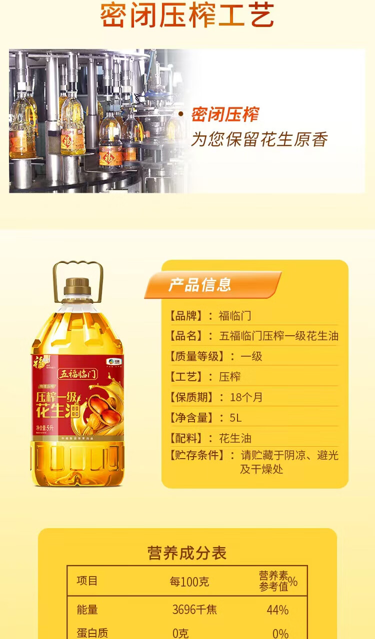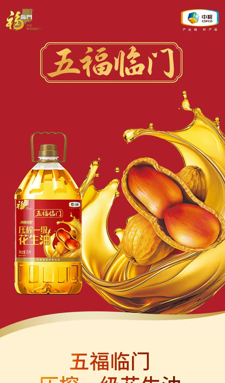 中糧福臨門五福臨門壓榨一級花生油5L 中糧福臨門五福臨門壓榨一級花生油5L