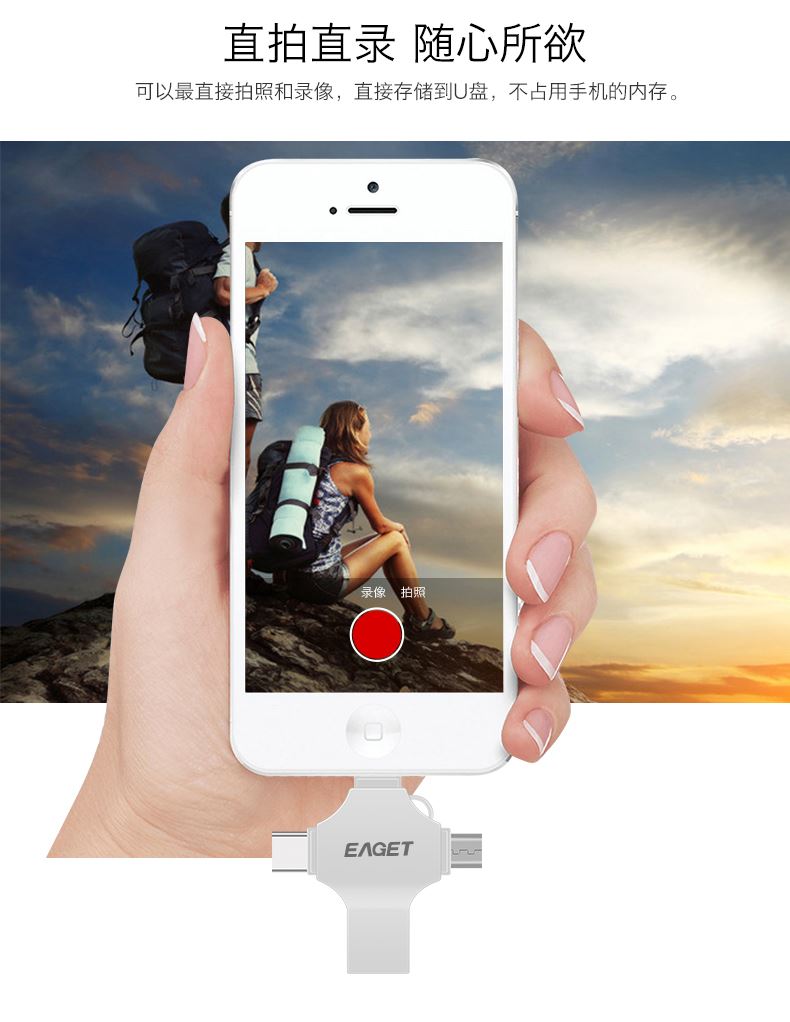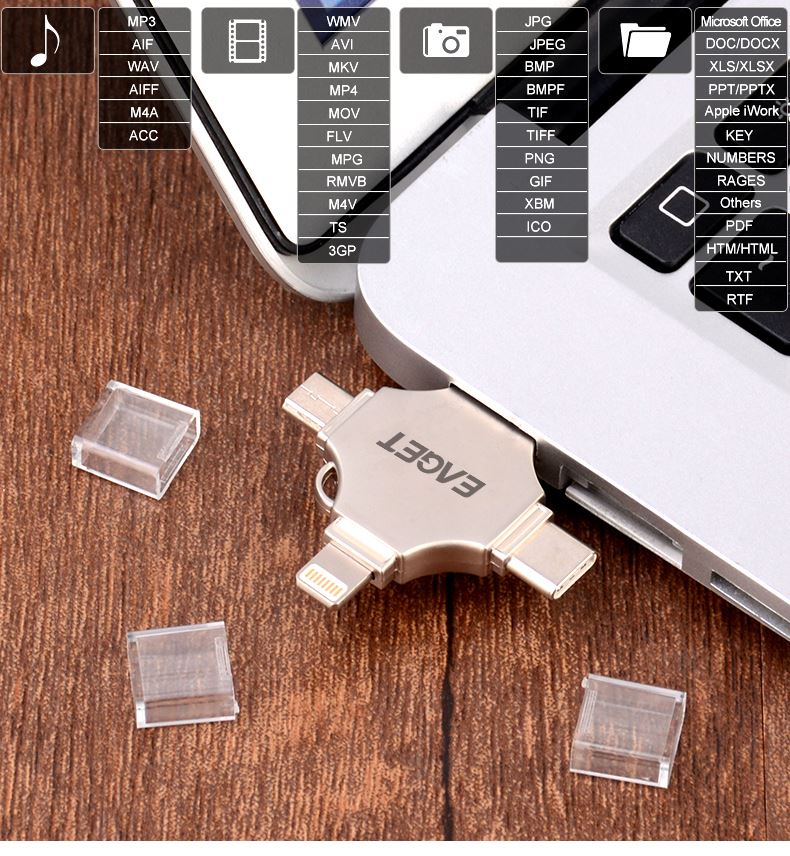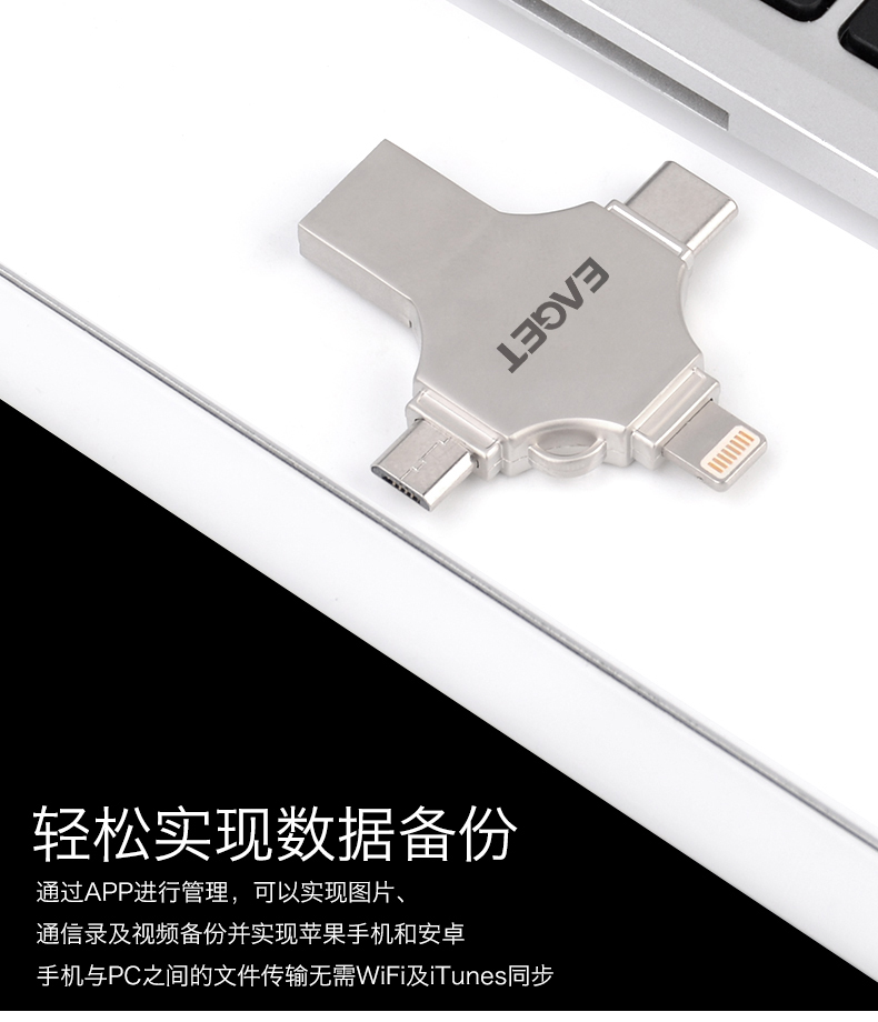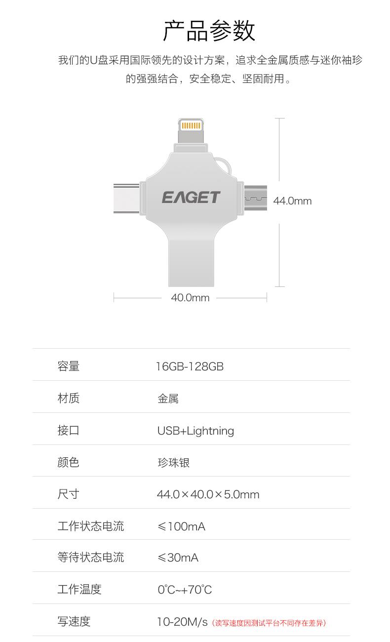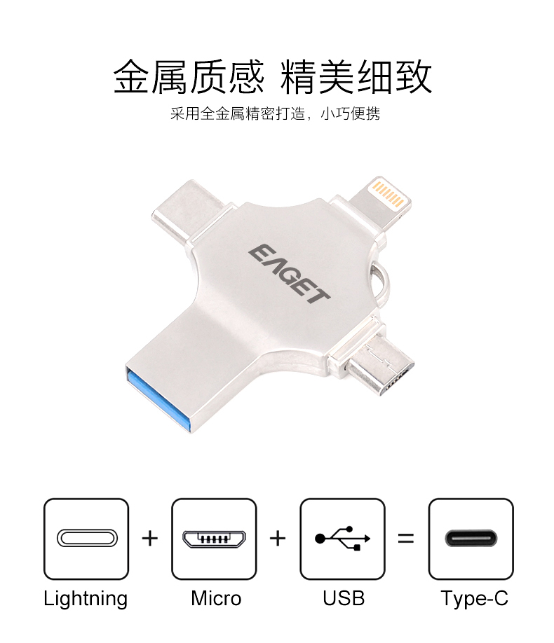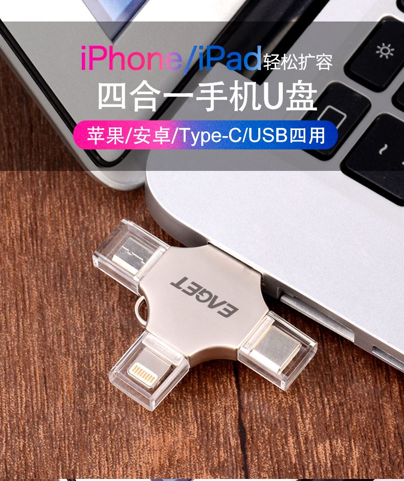 (EAGET)憶捷CF12手機電腦兩用四合一U盤128G 禮品已成功加入PPT!