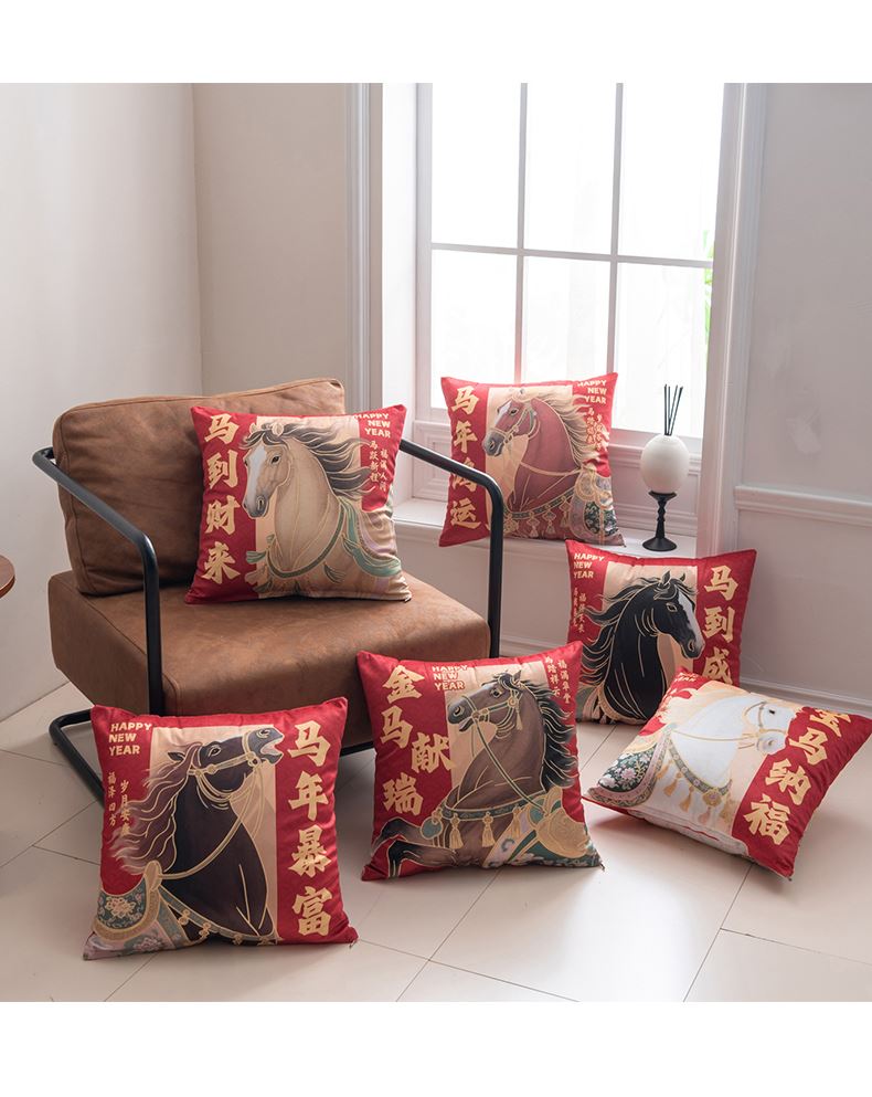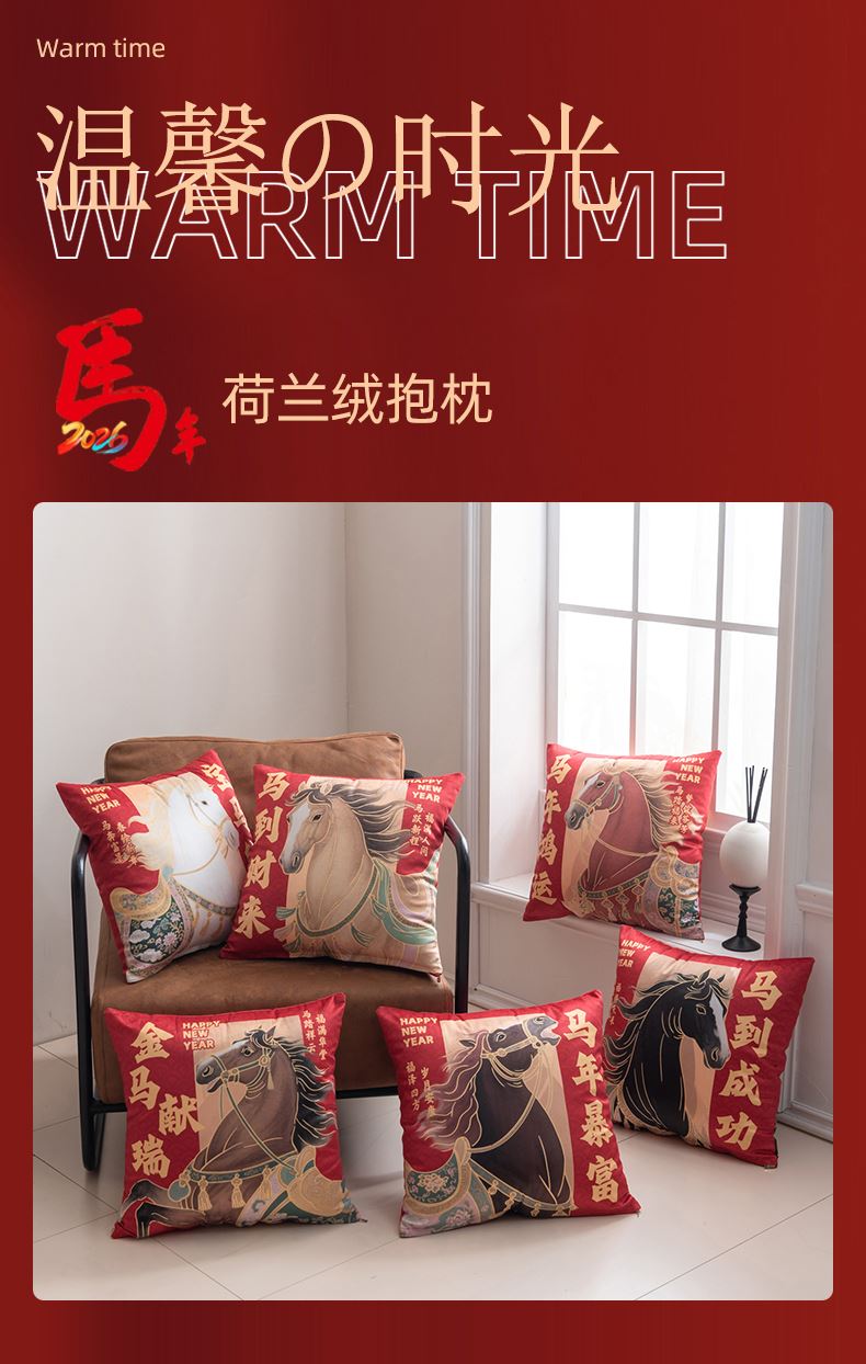 蕊絲坊家紡新款柔軟高彈棉馬年荷蘭絨抱枕 蕊絲坊家紡新款柔軟高彈棉馬年荷蘭絨抱枕