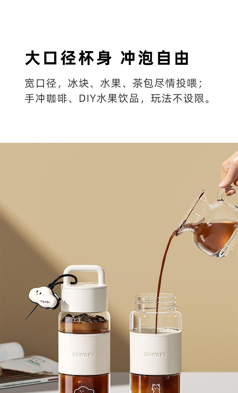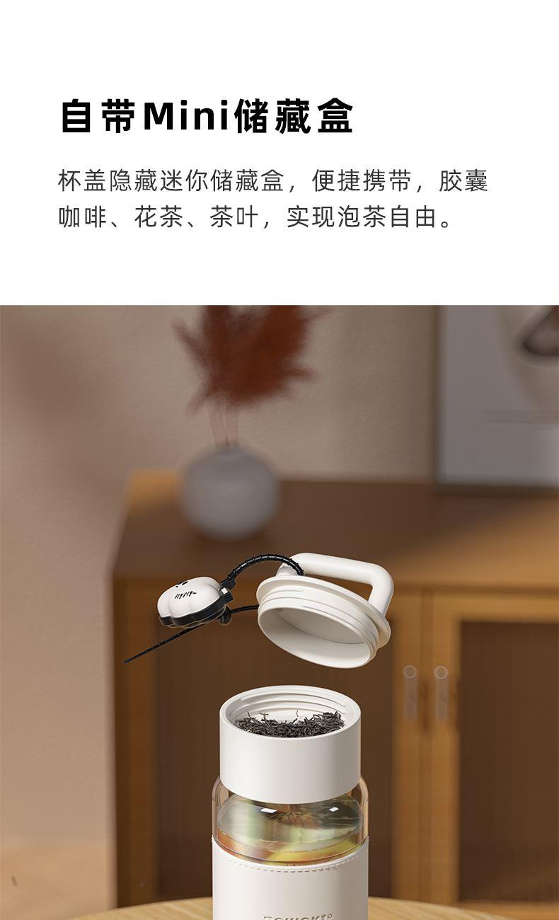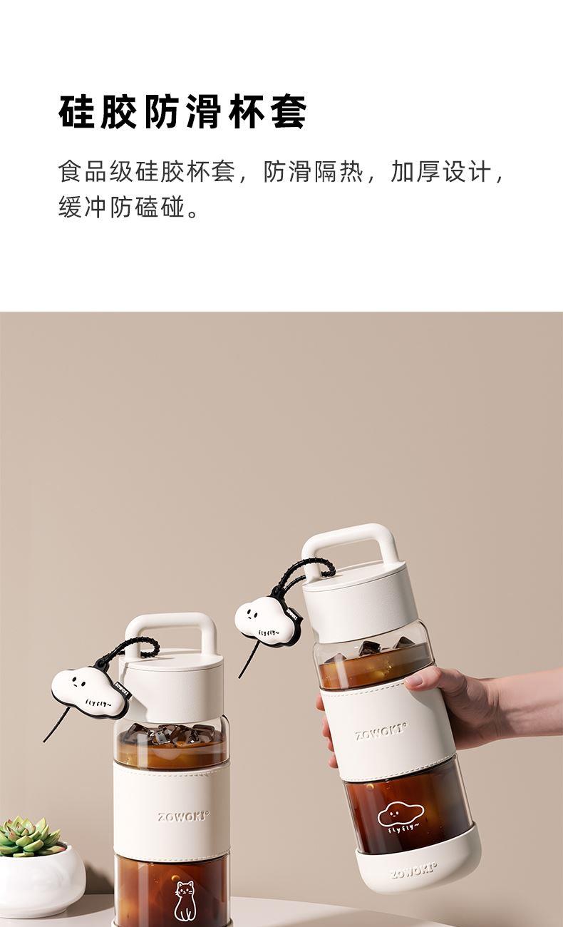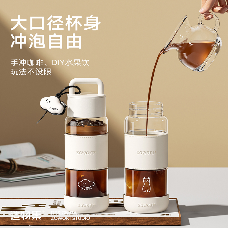 容量:710ml | 凈重:375g | 口徑:53mm 高硼硅玻璃杯身,無(wú)異味不變形。 一體式便攜提蓋,自帶mini儲(chǔ)藏盒, 大口徑杯身,易清洗。 硅膠防滑杯套,防滑隔熱。
