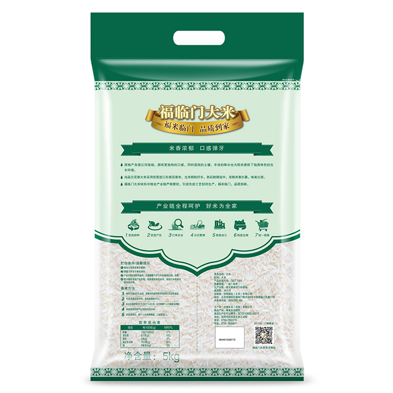 凈含量:5kg 條形碼:69449103 28172 開票稅率:9% 產(chǎn)品賣點(diǎn): 中糧福臨門出品,26道工序精控,一級(jí)米質(zhì),專屬檢測加持,核心產(chǎn)區(qū)種植,顆粒飽滿均勻,熟飯米香濃郁,軟韌彈牙,煮粥煮飯皆佳。