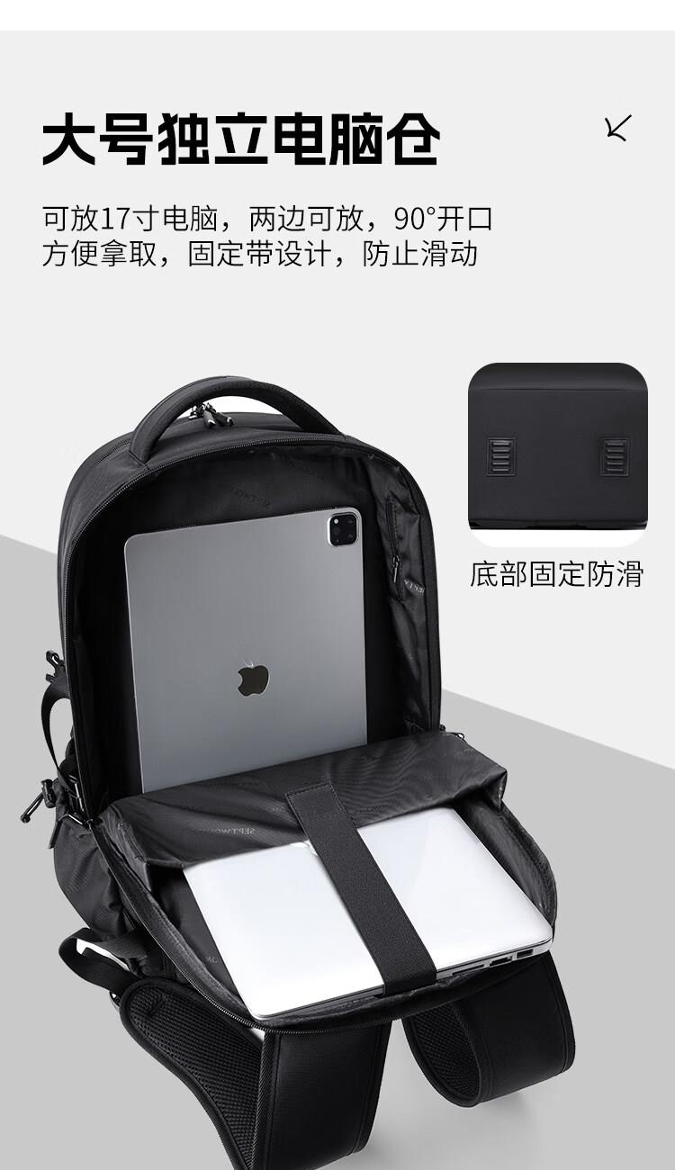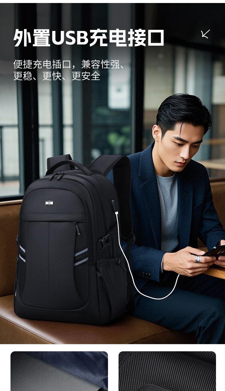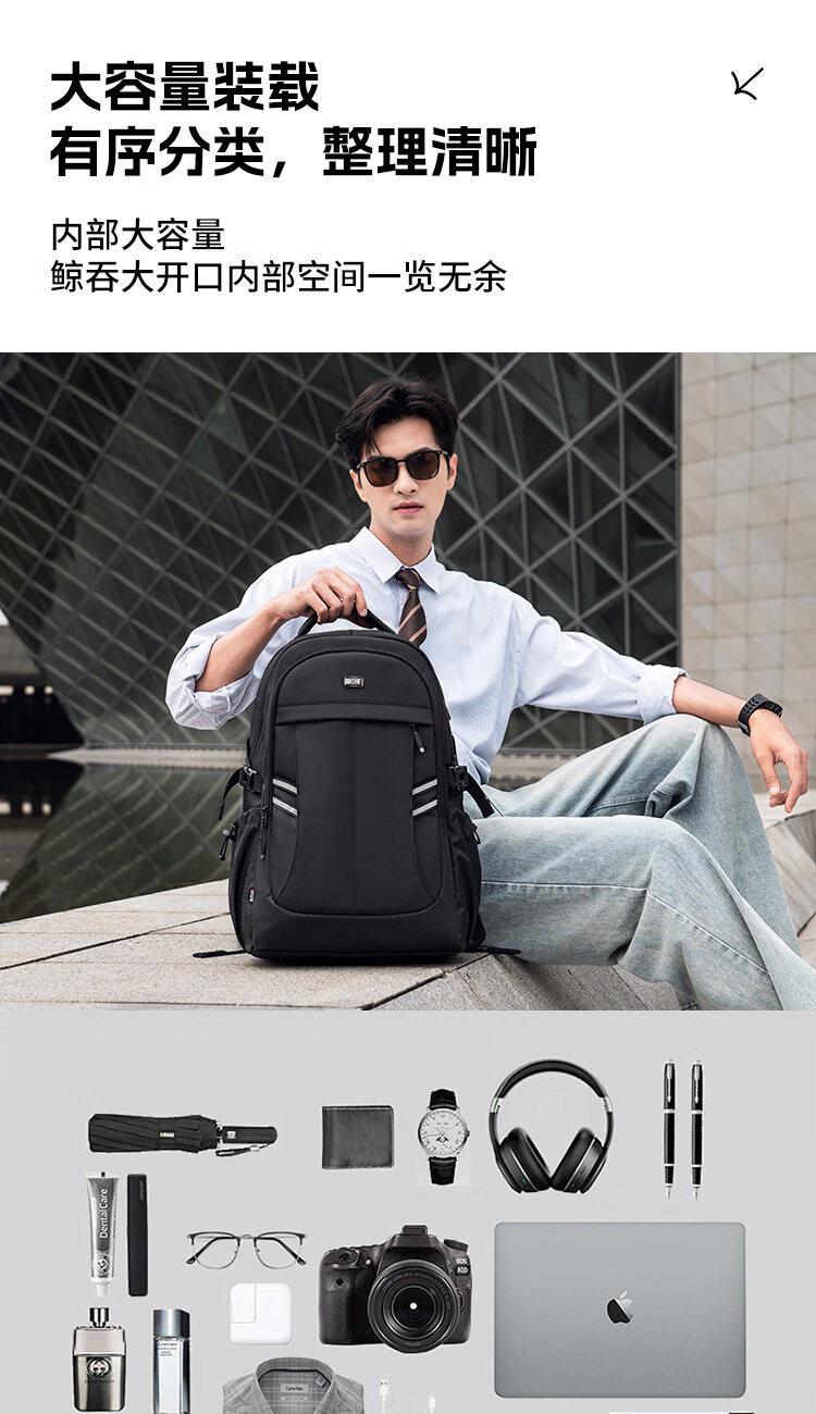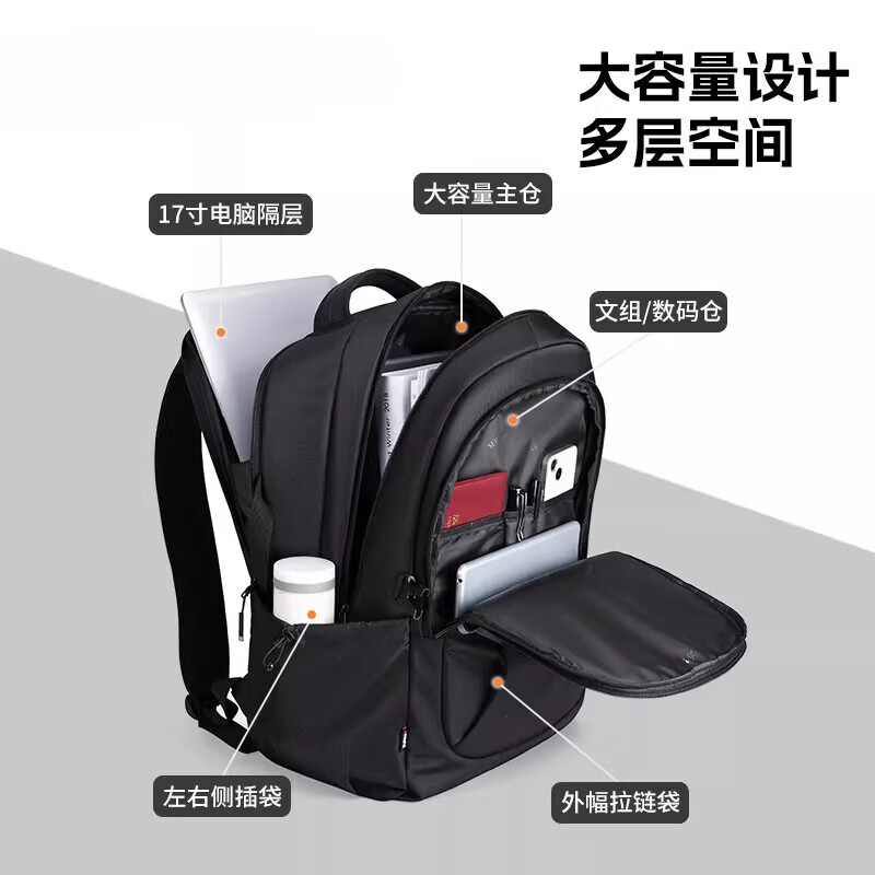類別:背包 外部材質(zhì):織物 閉合方式:拉鏈 規(guī)格:500x330x230mm 容納電腦尺寸:17寸 風格:通勤風 商務風 攜包出行,旅途無憂,立體挺括包型兼顧時尚外觀與功能性,輕松駕馭多種都市出行場景 內(nèi)里大容裝載,多層收納空間,滿足多樣收納需求,輕裝出行,采用高密度織物面料,防刮耐用,防潑賤,輕松應對潑水,便攜外置USB充電接口,3D透氣蜂窩設計,柔軟減壓肩帶