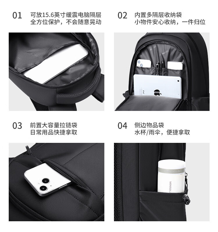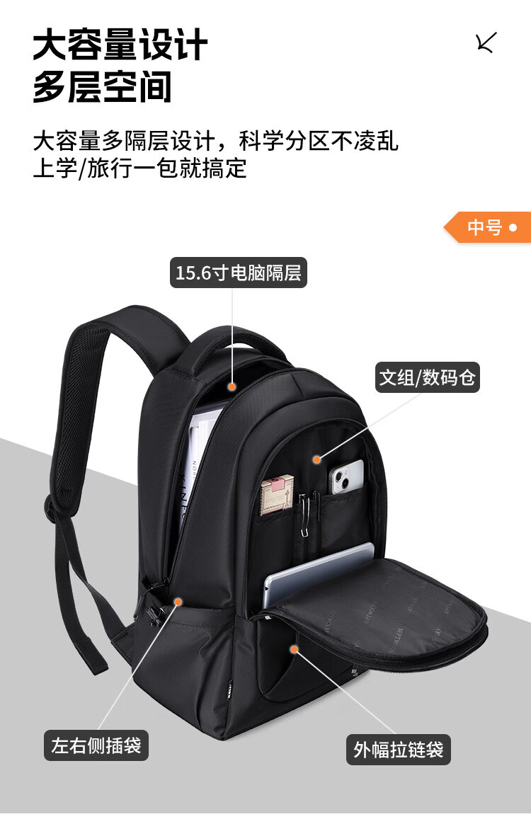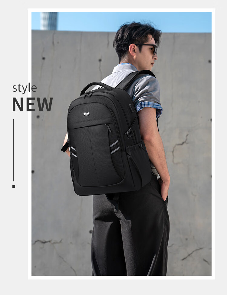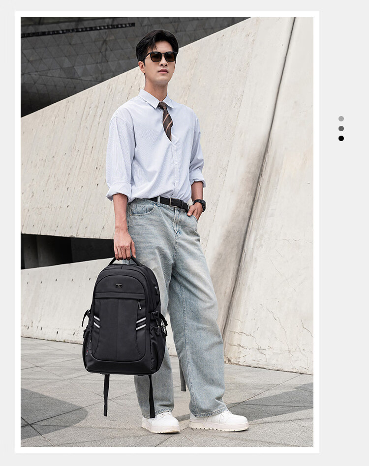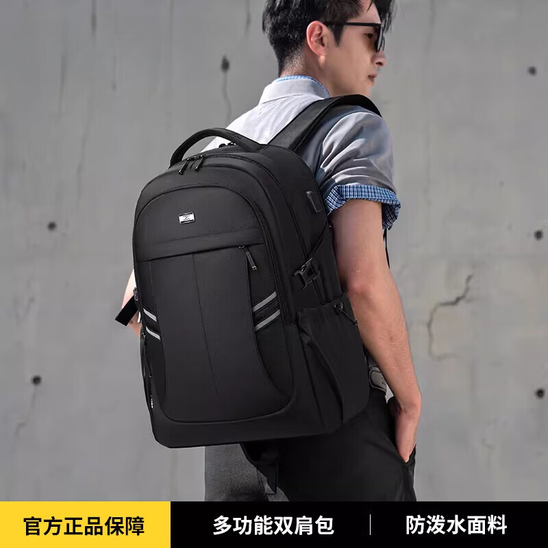 類別:背包 外部材質(zhì):織物 閉合方式:拉鏈 規(guī)格:500x330x230mm 容納電腦尺寸:17寸 風格:通勤風 商務風 攜包出行,旅途無憂,立體挺括包型兼顧時尚外觀與功能性,輕松駕馭多種都市出行場景 內(nèi)里大容裝載,多層收納空間,滿足多樣收納需求,輕裝出行,采用高密度織物面料,防刮耐用,防潑賤,輕松應對潑水,便攜外置USB充電接口,3D透氣蜂窩設計,柔軟減壓肩帶