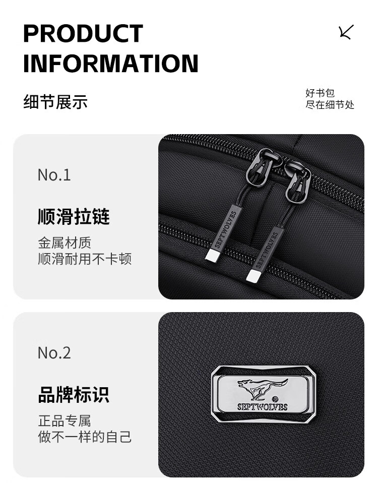 七匹狼新款雙肩包大容量休閑商務通勤輕便CD141635-1 禮品已成功加入PPT!