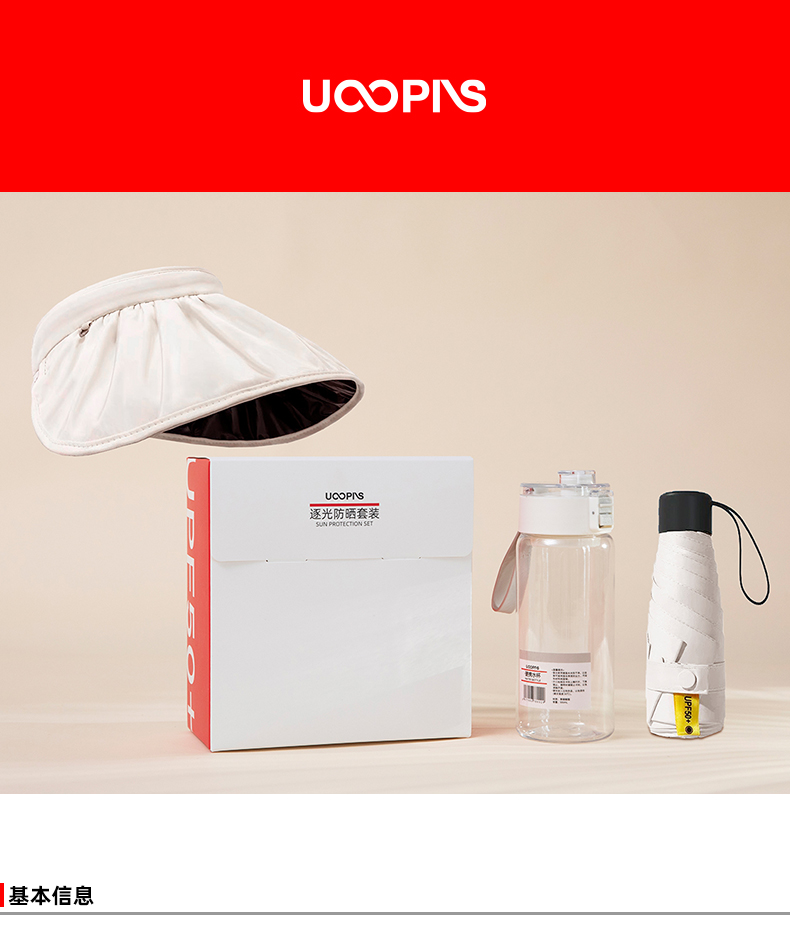 UOOPINS(優(yōu)品序)防曬貝殼帽+水杯+黑膠晴雨傘組合 禮品已成功加入PPT!