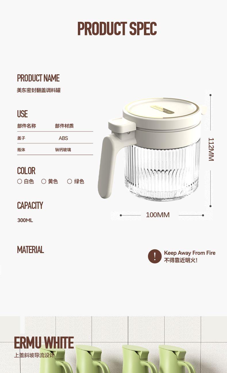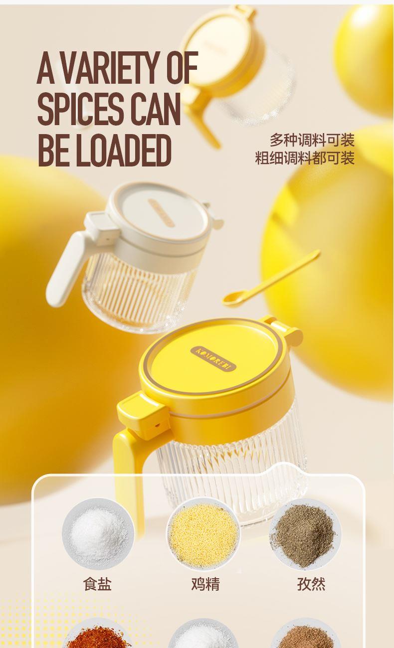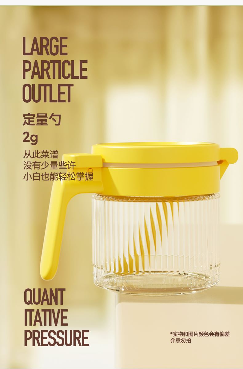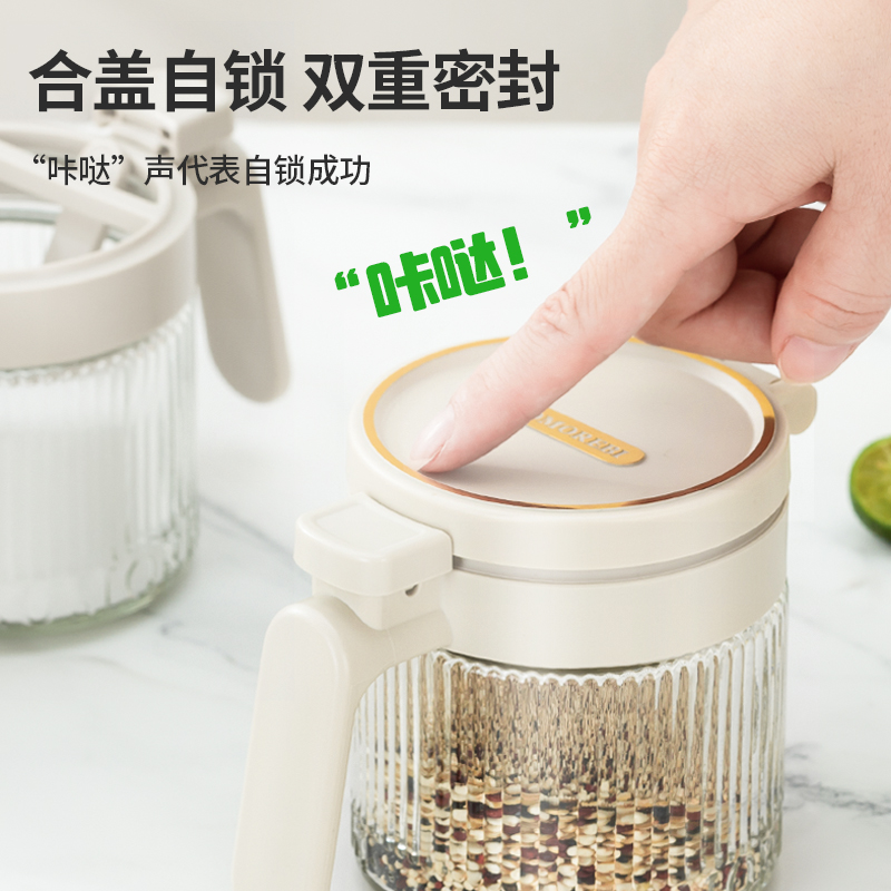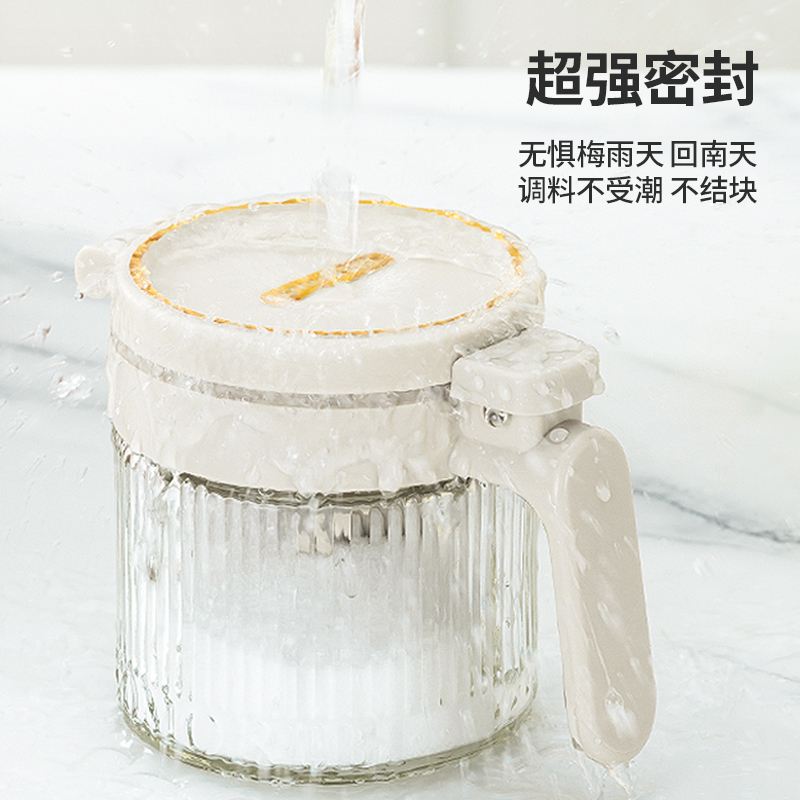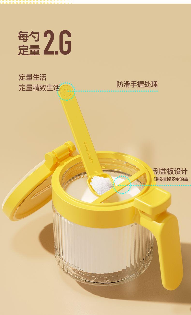 美東 一按即開密封翻蓋調(diào)料盒 內(nèi)外兼修好產(chǎn)品好結(jié)構(gòu) PP蓋子+加厚硅膠圈+定量勺子+鈉鈣玻璃 每日2g,定量精致生活,防滑手握處理 超強密封無懼回南天,調(diào)料不受潮不結(jié)塊強密封 加厚硅膠圈。防護瓶內(nèi)的調(diào)料