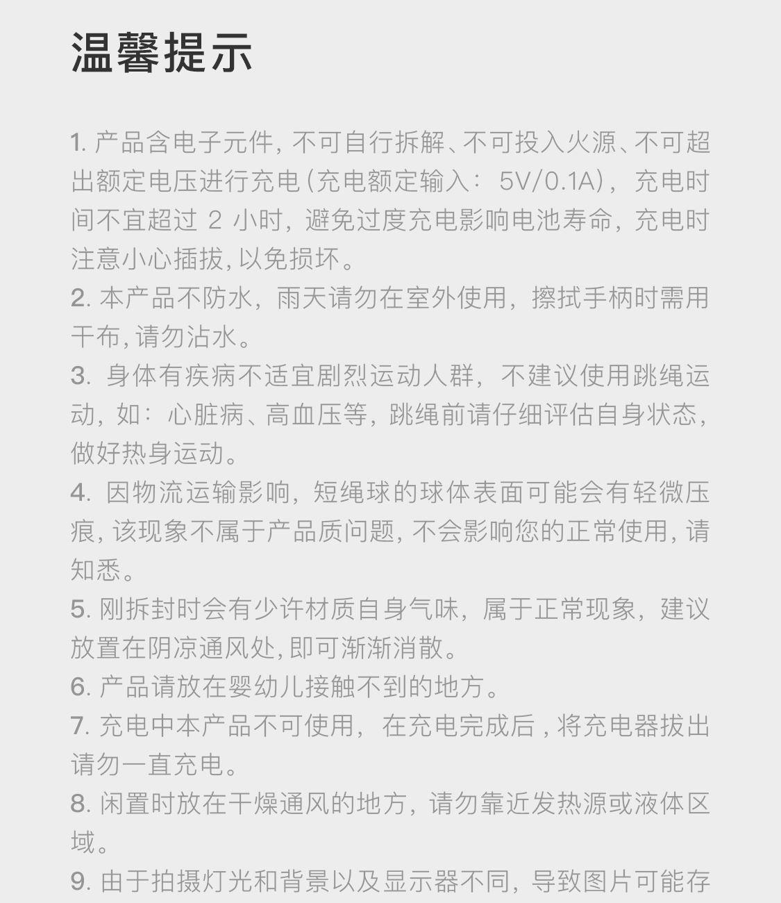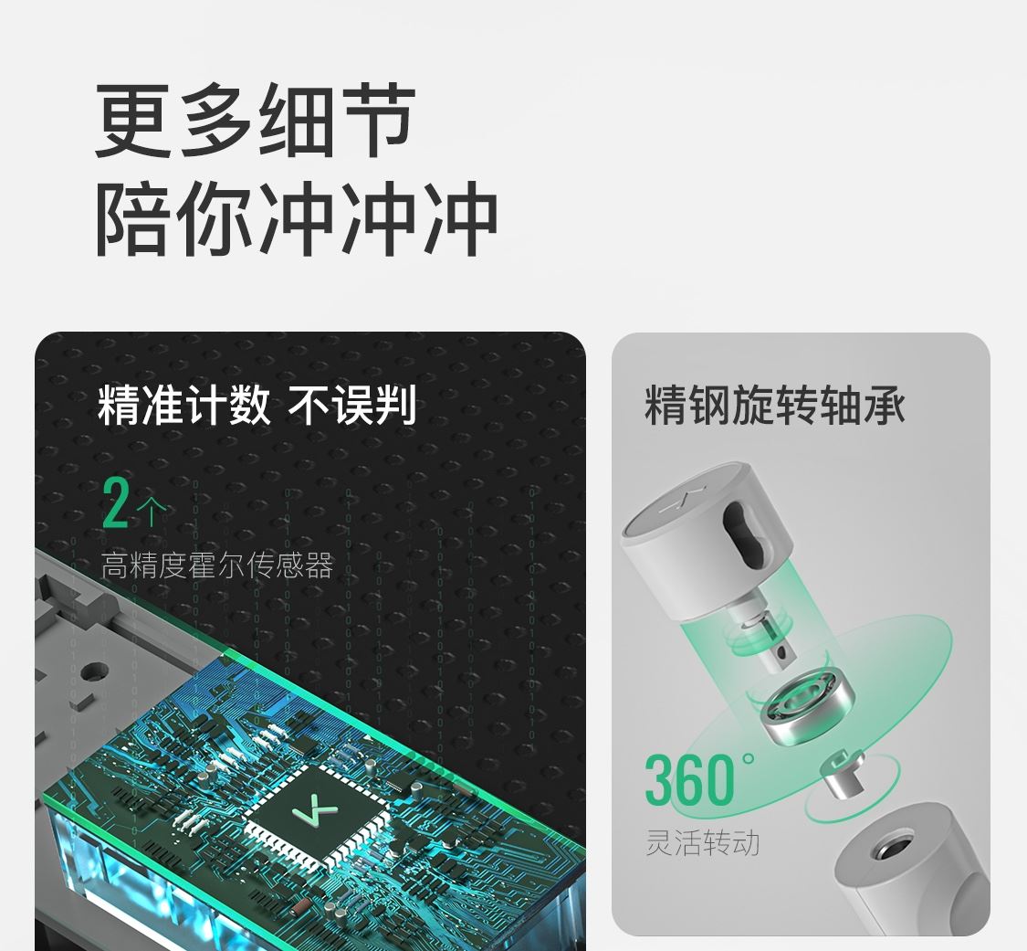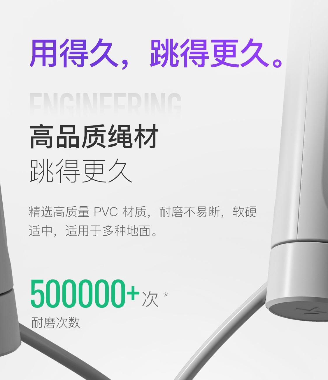 材質(zhì):長繩:PVC+鋼絲 球體:EVA 手柄:ABS 短繩繩長: 29.5cm 短繩球重: 60g 長繩繩長: 3m 三種計數(shù)模式 一鍵60S測試 目標結束提示音 八面防滑手柄 雙霍爾計數(shù)傳感器 50W 次耐磨長繩 LED夜視顯示屏
