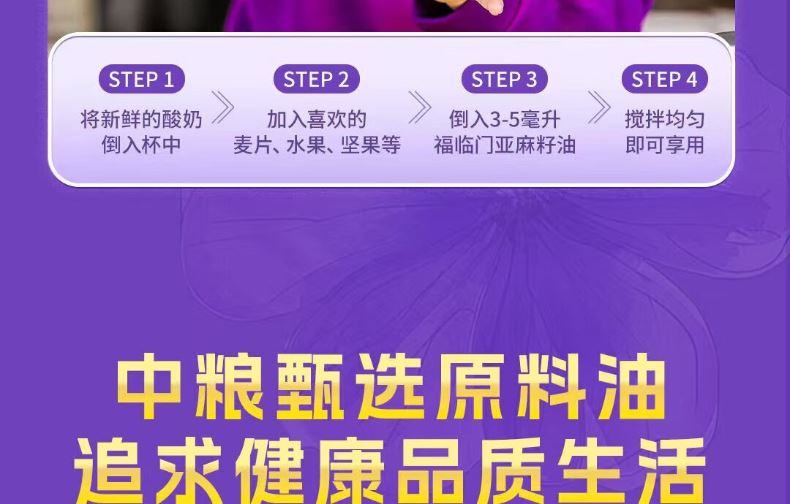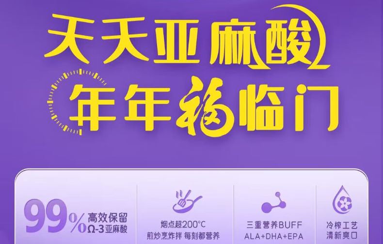 央企品質(zhì) + 高 Ω-3 營(yíng)養(yǎng):中糧全產(chǎn)業(yè)鏈管控,優(yōu)選核心產(chǎn)區(qū)亞麻籽,α- 亞麻酸含量超 50%,守護(hù)心腦健康,營(yíng)養(yǎng)更安心。