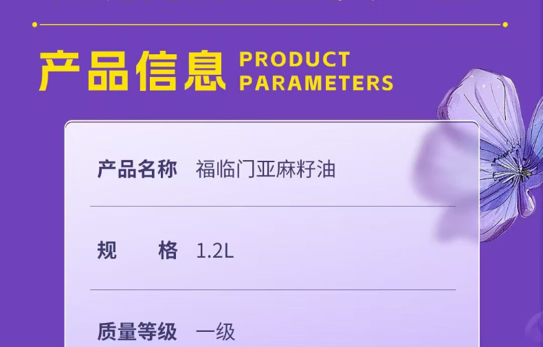 配置組合:福臨門(mén)金闕謠亞麻籽油1.2L*2瓶