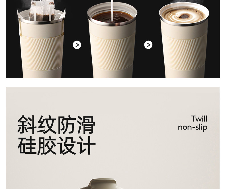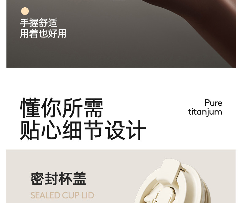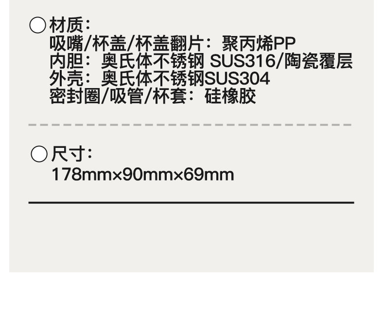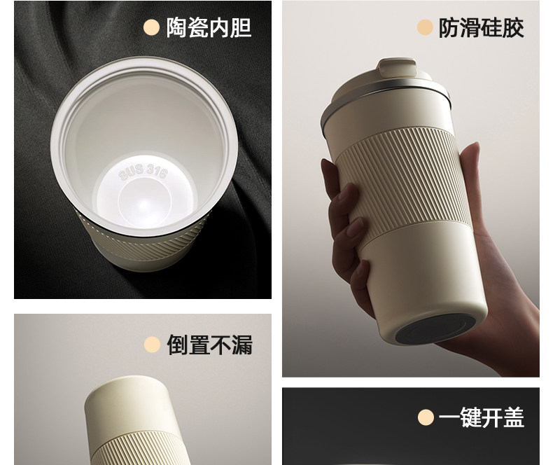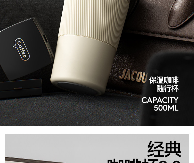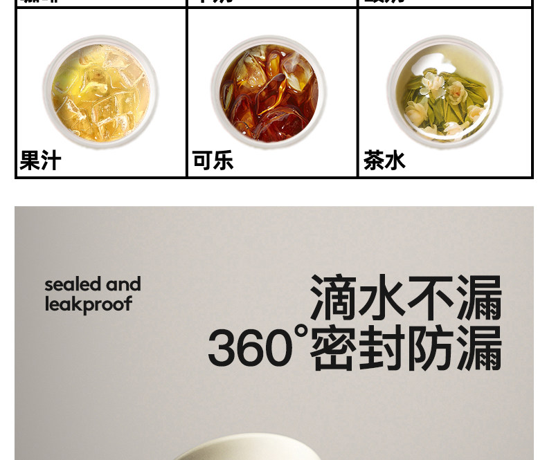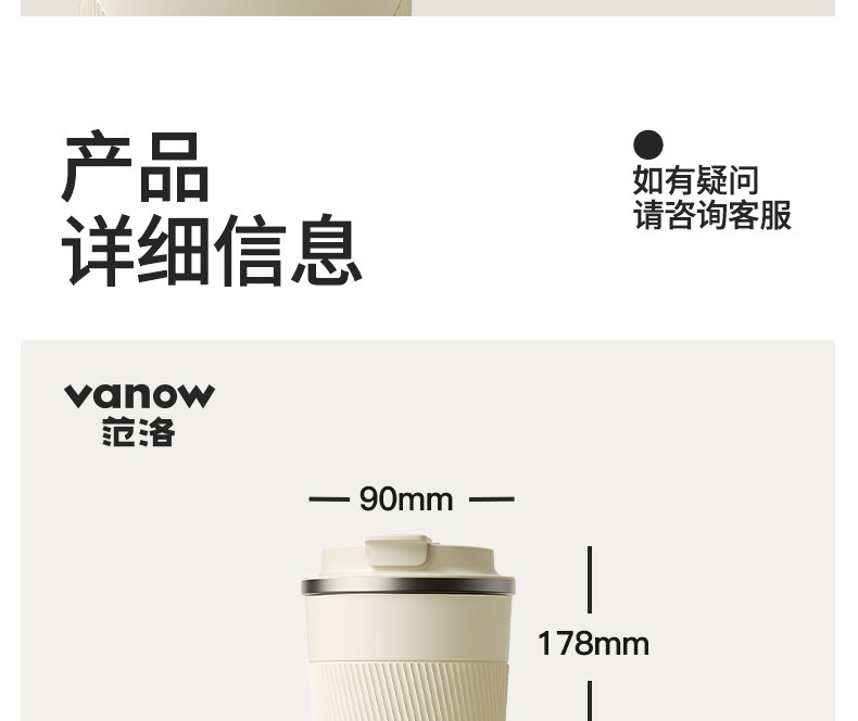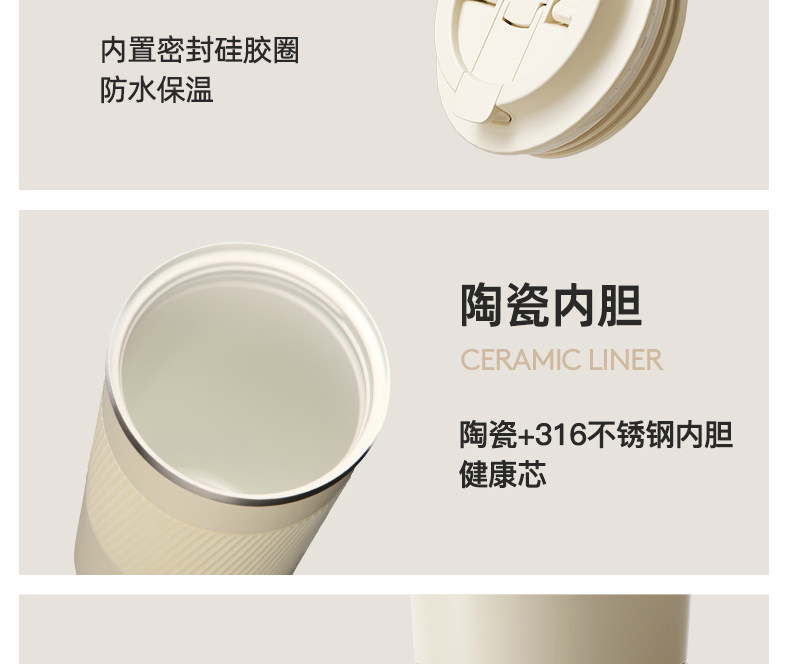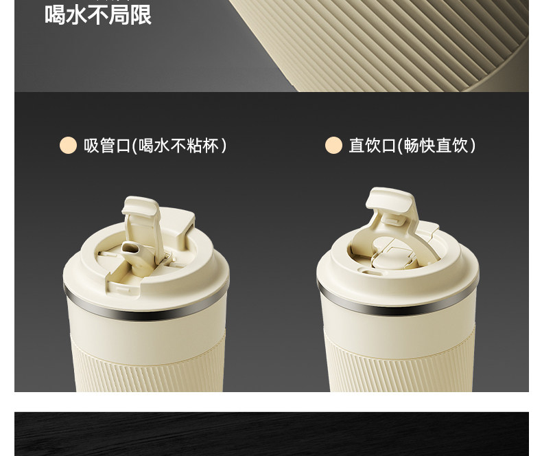 型號:VO-JD50BCF 顏色:波盤黑,耶加白 容量:500ml 尺寸:178mm*90mm*69mm 材質(zhì):316不銹鋼/食品級pp材質(zhì)/硅橡膠 產(chǎn)品賣點(diǎn):1.雙飲設(shè)計,肆意暢喝 2.滴水不漏,360度密封防漏 3.強(qiáng)效鎖溫工藝,每一刻都有溫度 4.手指一彈,開合自如 5.斜紋防滑,硅膠設(shè)計