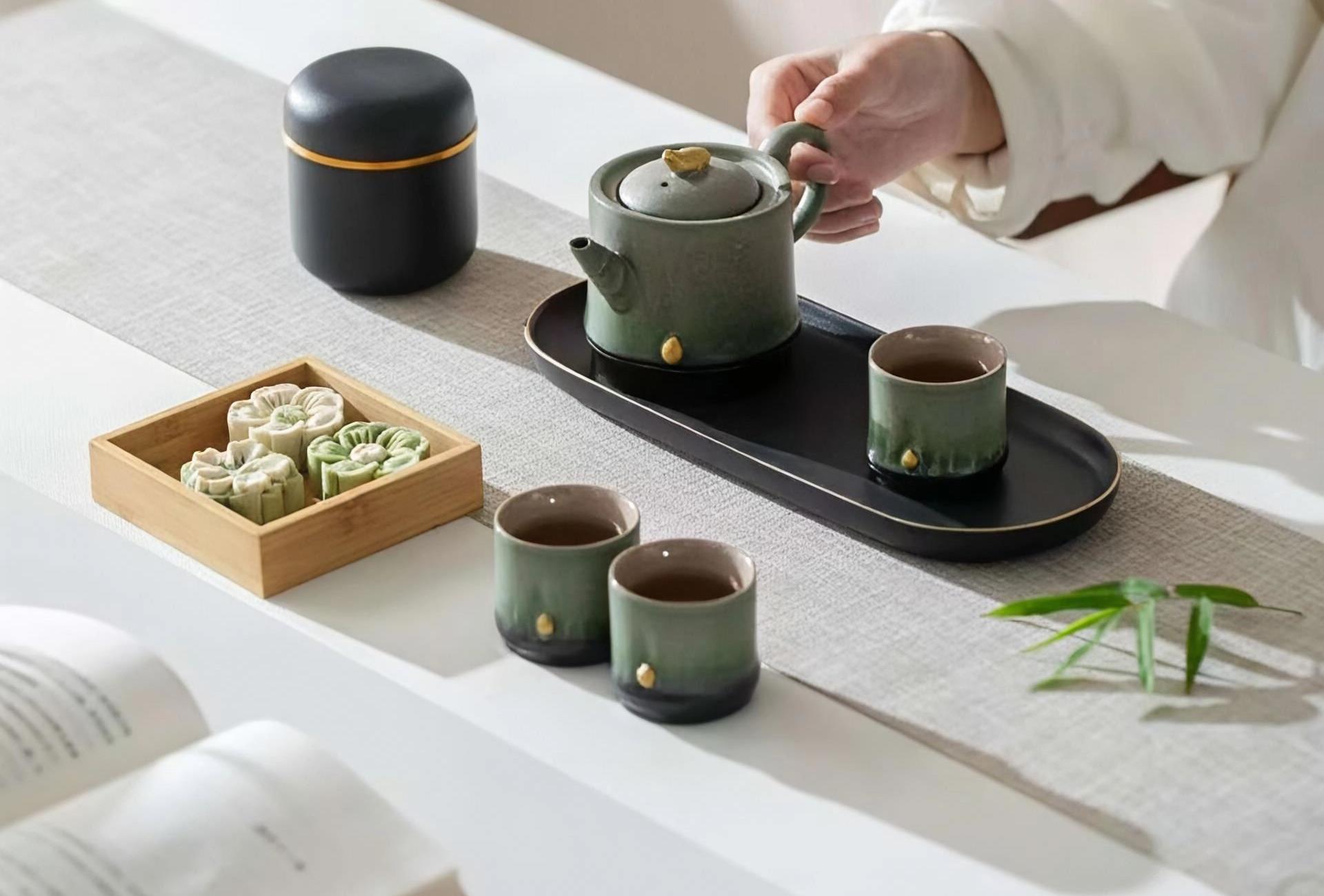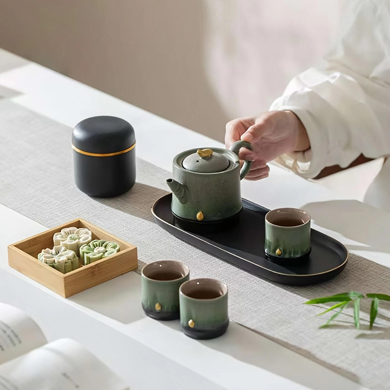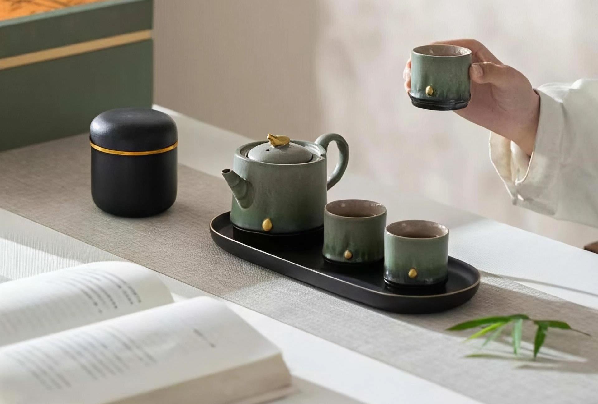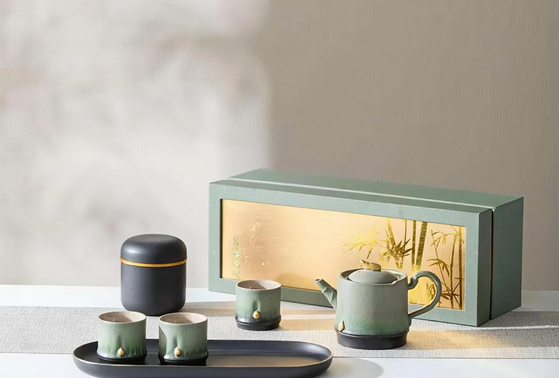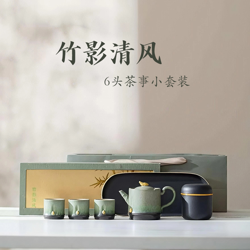 尾橋下窯文創(chuàng)復(fù)古竹影清風(fēng)節(jié)節(jié)高升茶事小套裝窯變陶瓷茶具伴手禮