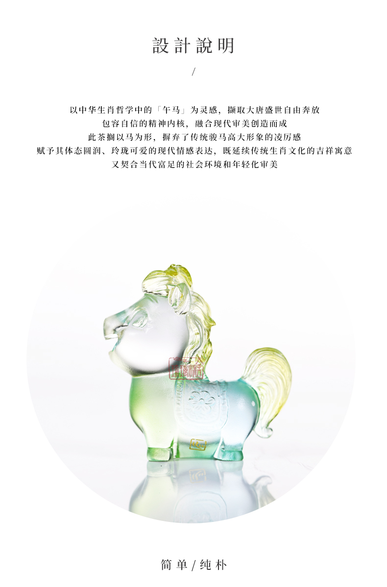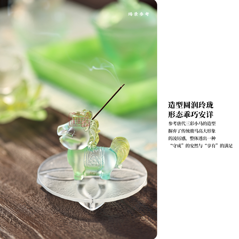 以中華生肖哲學(xué)中的「午馬」為靈感,擷取大唐盛世自由奔放、包容自信的精神內(nèi)核,融合現(xiàn)代審美創(chuàng)造而成。此茶擱以馬為形,摒棄了傳統(tǒng)駿馬高大形象的凌厲感,賦予其體態(tài)圓潤(rùn)、玲瓏可愛(ài)的現(xiàn)代情感表達(dá),既延續(xù)傳統(tǒng)生肖文化的吉祥寓意,又契合當(dāng)代富足的社會(huì)環(huán)境和年輕化審美,寓意在安定祥和的當(dāng)下,我們同樣可以守護(hù)內(nèi)心那份純粹的愉悅與松弛。生肖為形:以十二生肖中的馬為靈感,參考了唐代三彩小馬的造型,與高大威猛的戰(zhàn)馬不同,這種小馬的造型,往往體態(tài)圓潤(rùn),神情溫順。反映了在社會(huì)穩(wěn)定、物質(zhì)豐盈的背景下,人們對(duì)美好生活的細(xì)致追求與樂(lè)觀精神。小馬四足穩(wěn)穩(wěn)站立,形態(tài)乖巧安詳,透出一種“守成”的安然與“享有”的滿足。