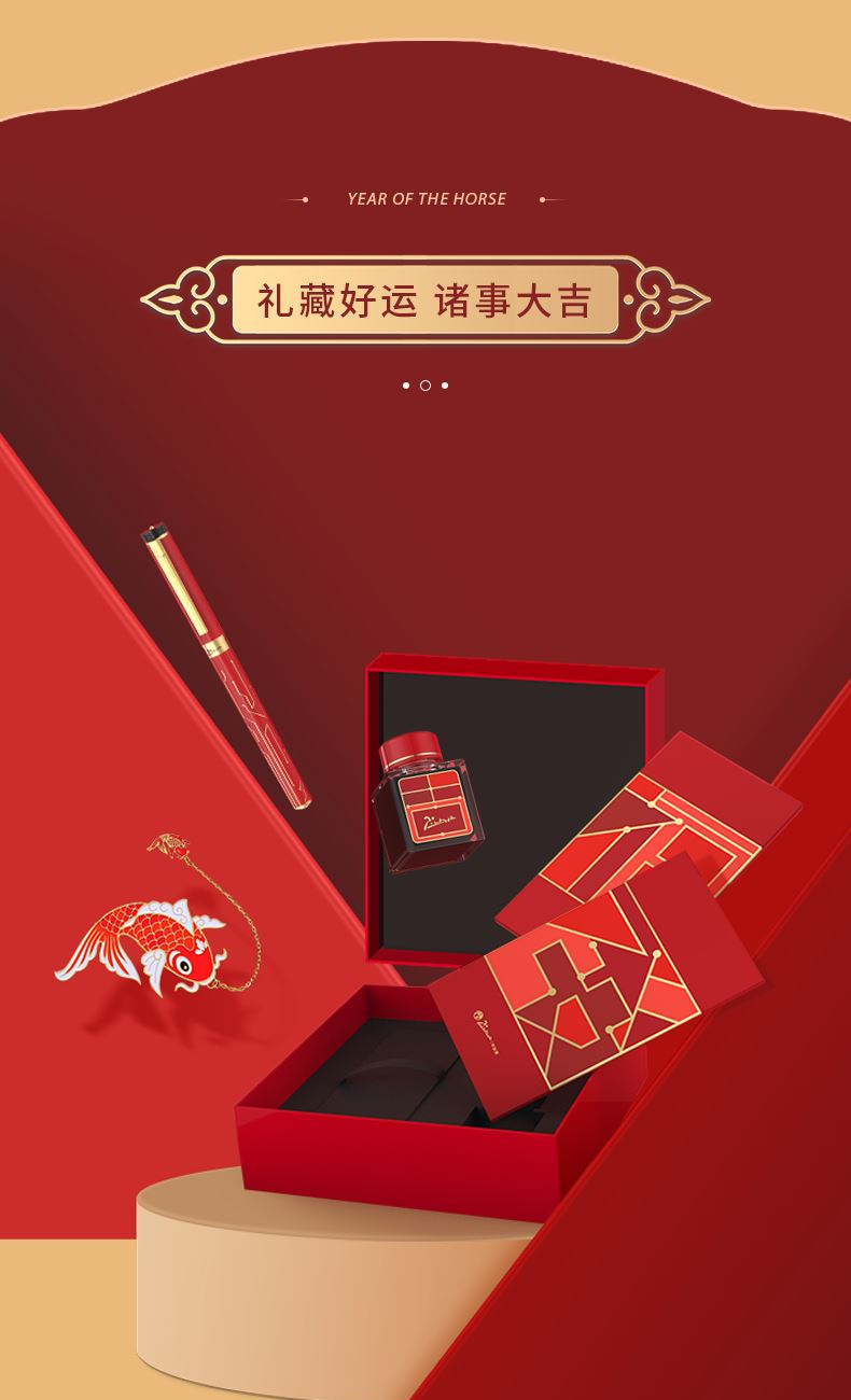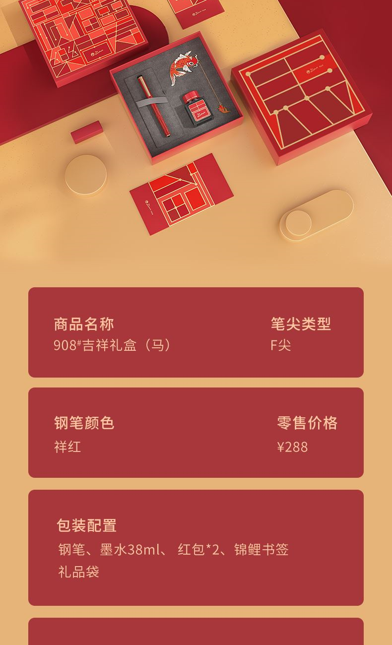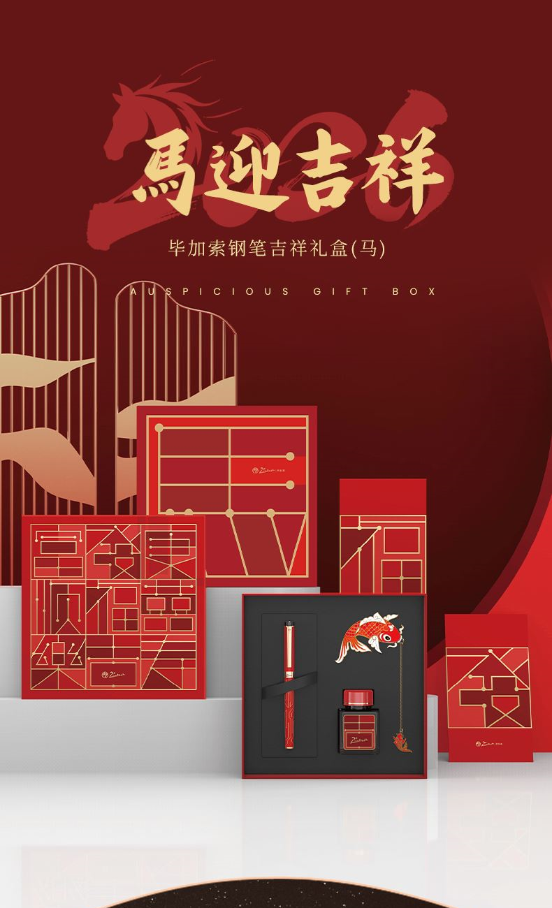 畢加索PS-908吉祥禮盒(馬)馬年中國紅簽字筆成人新年