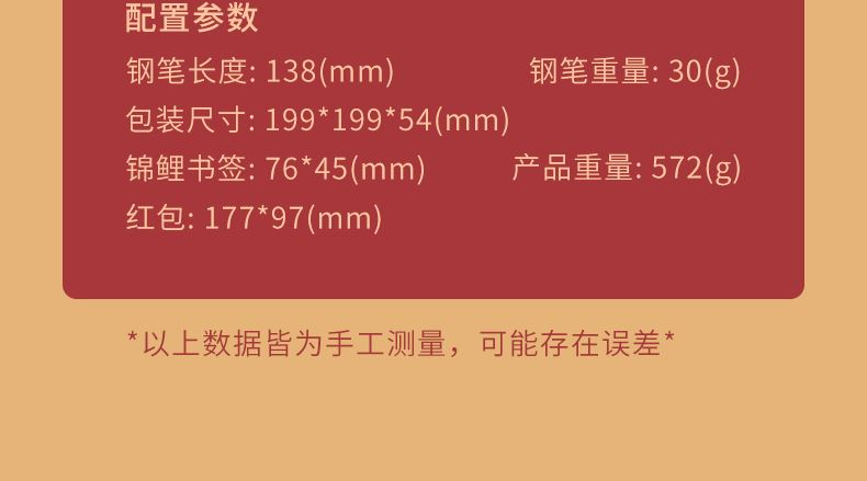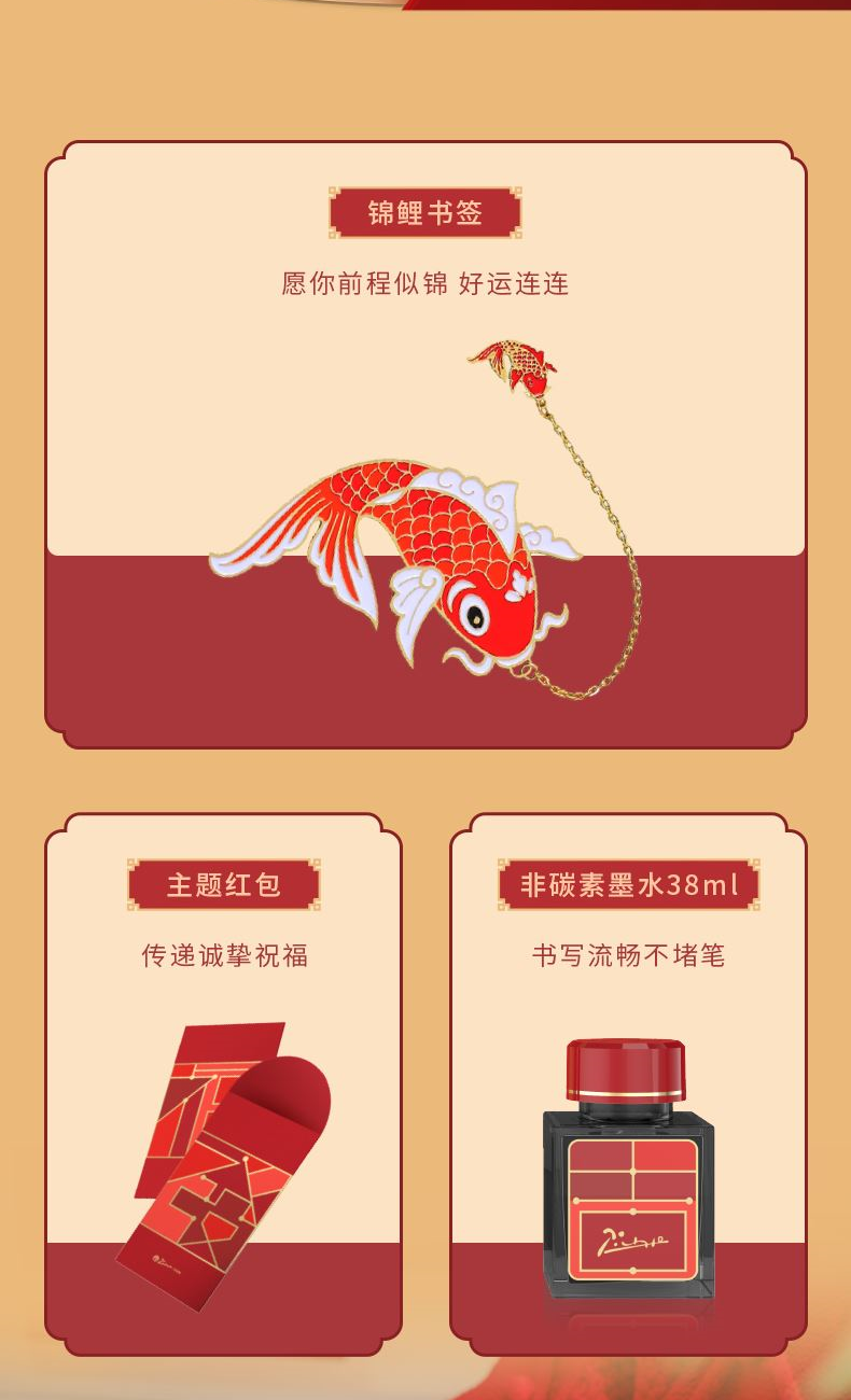 【包裝配置】鋼筆*1 、墨水40ml*1、錦鯉書簽*1、紅包*2、