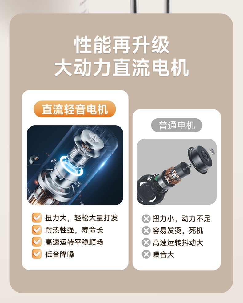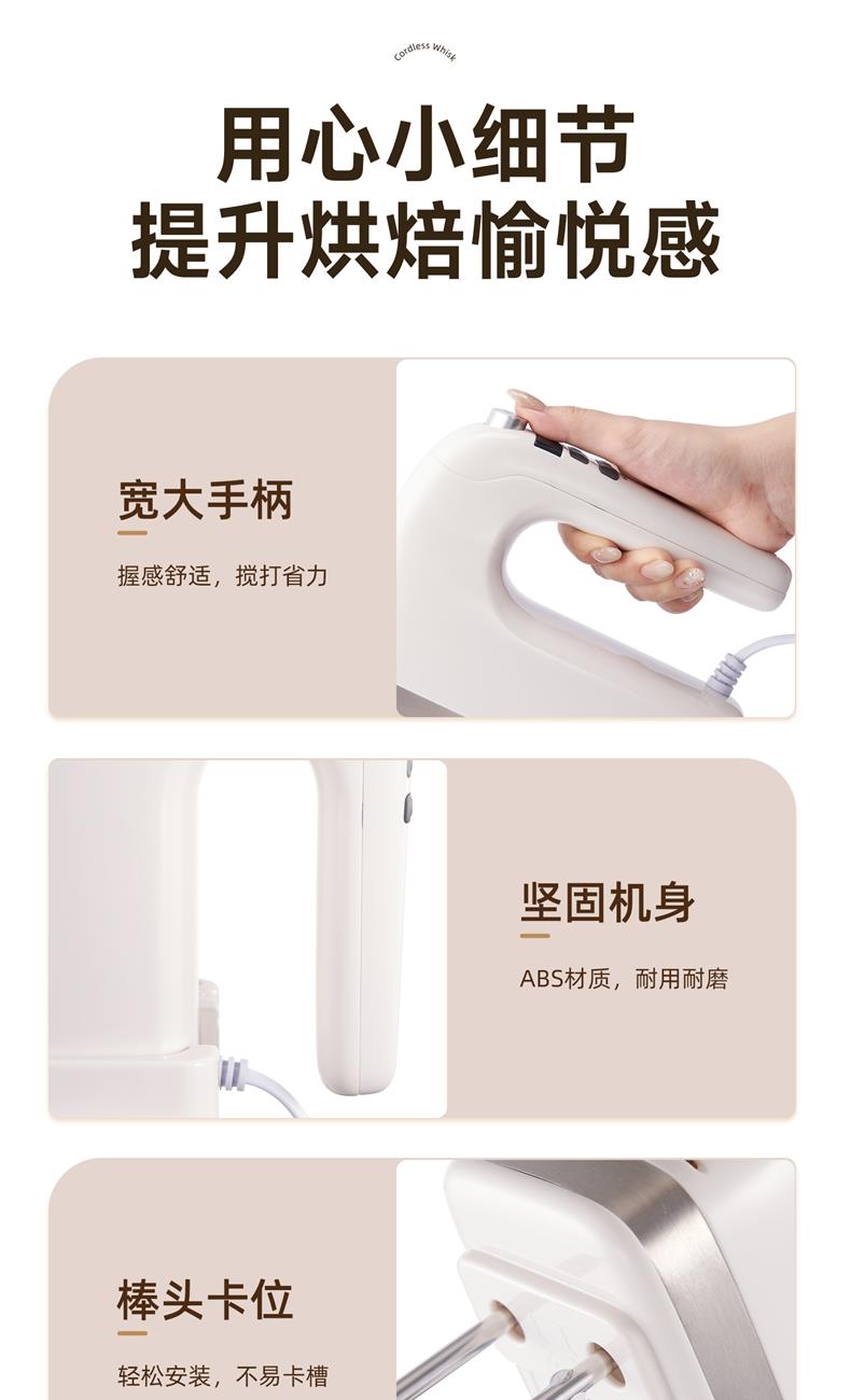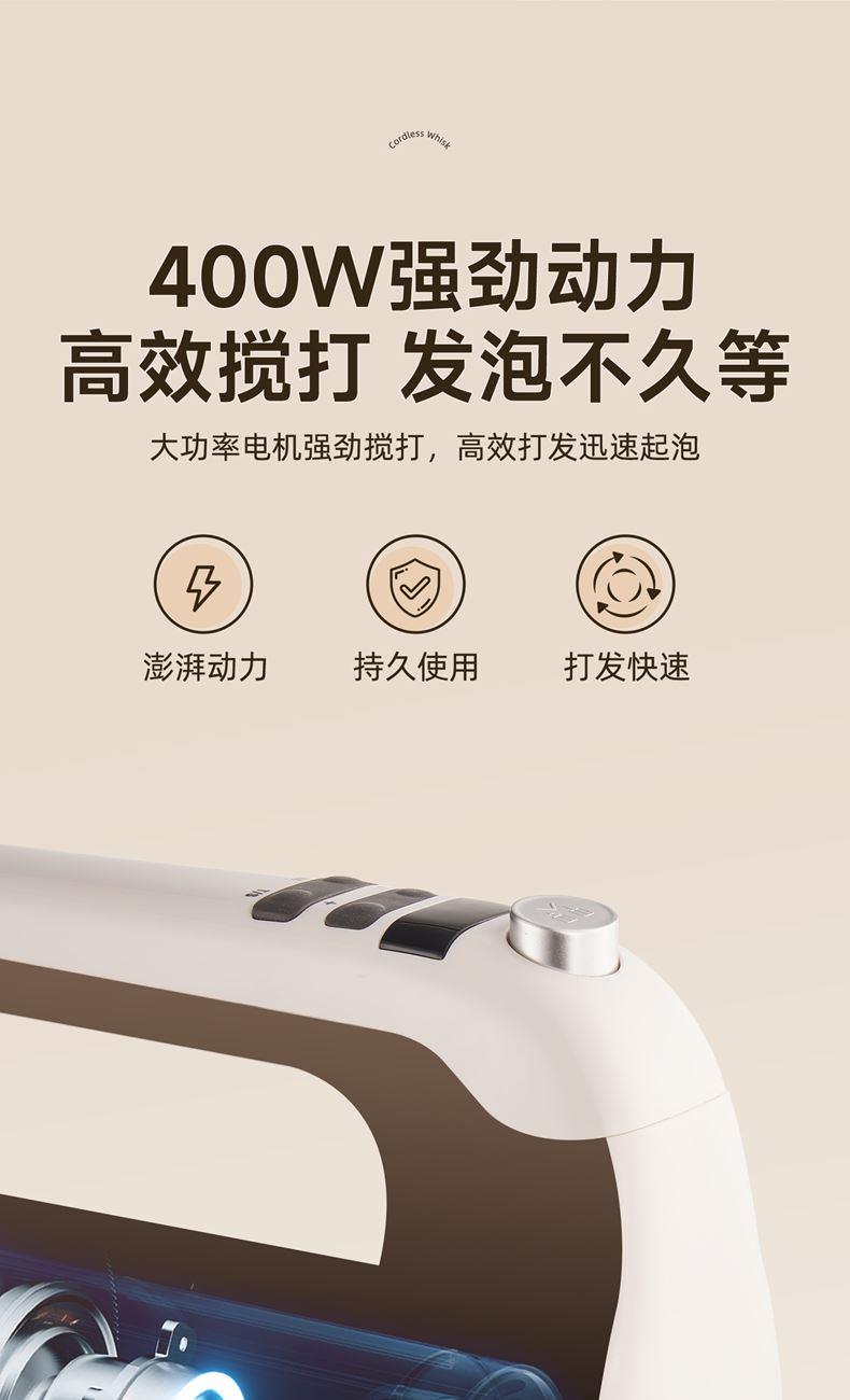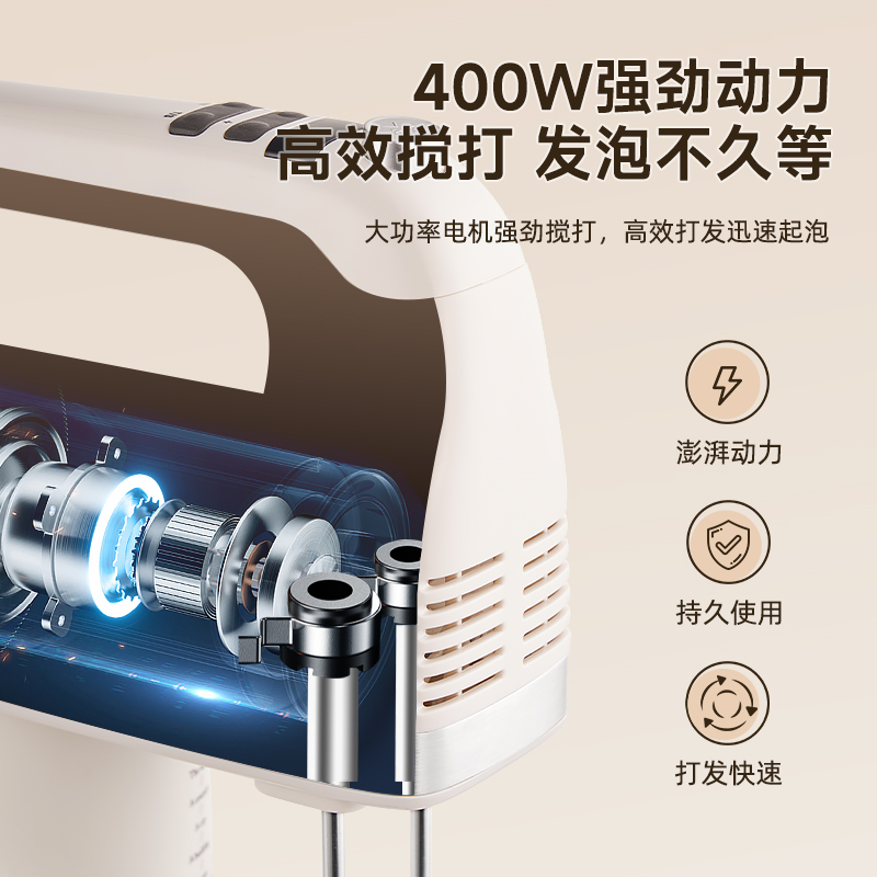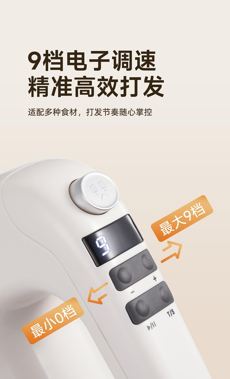 400W大功率直流輕音電機(jī); 上手快打發(fā)高效,大扭力低噪不鬧心; 304不銹鋼六棒,數(shù)顯大屏; 10min計(jì)時(shí)功能,升級(jí)9檔電子調(diào)檔,讓烘焙更簡(jiǎn)單; 可立式設(shè)計(jì),立置桌面不臟手; 對(duì)流散熱設(shè)計(jì),持久輸出不過熱,延長使用壽命;