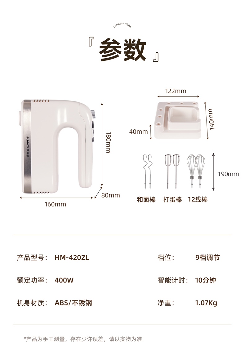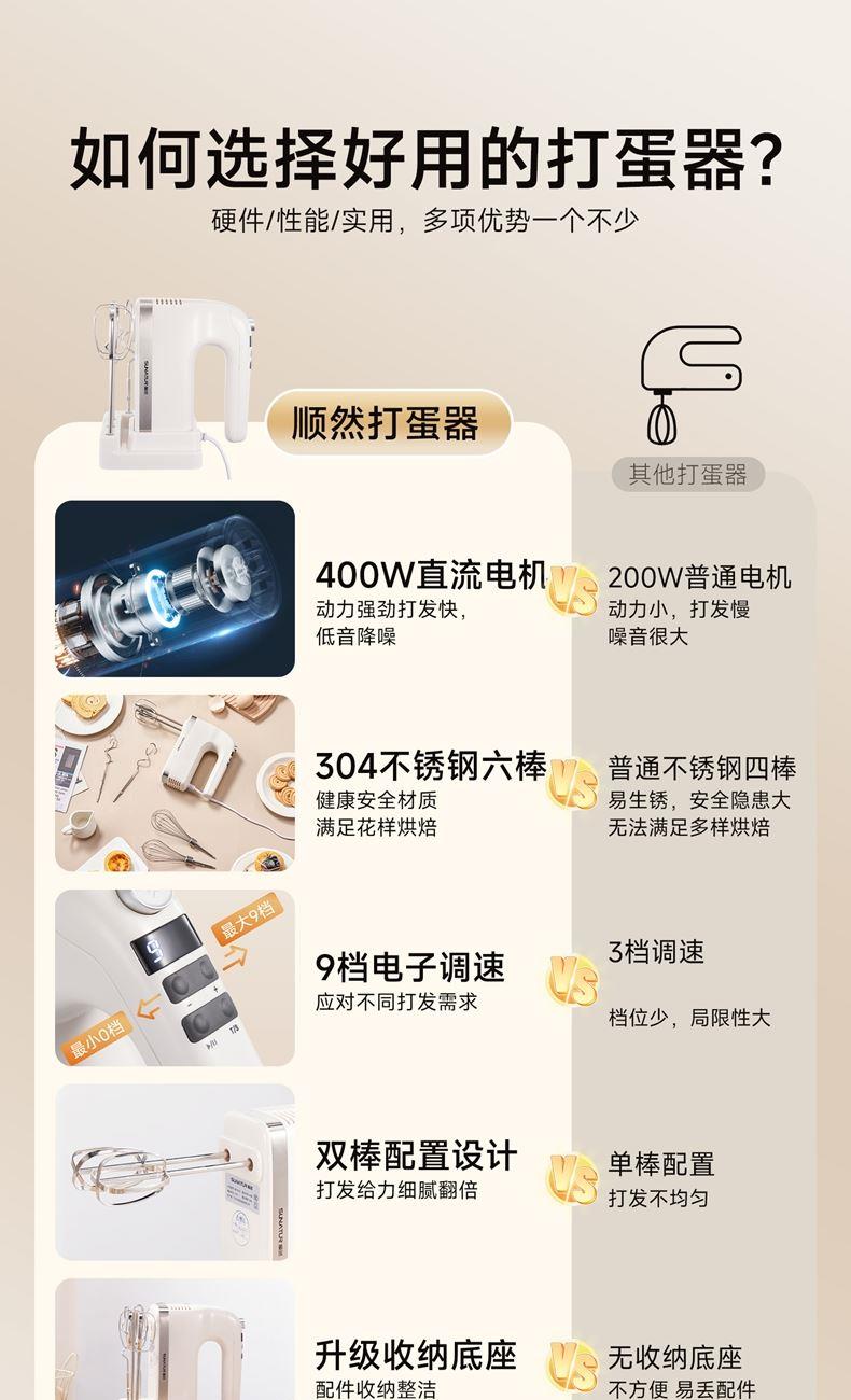 順然SUNATUR直流計(jì)時(shí)打蛋器六棒收納款HM-420ZL