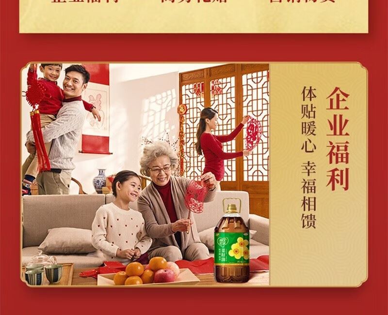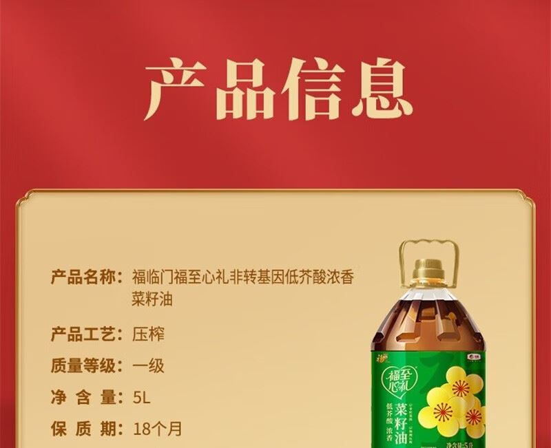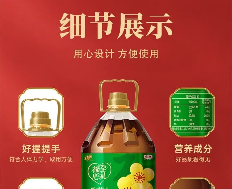 5L 大容量 + 寓意吉祥:滿足家庭長(zhǎng)期用油需求,"五福臨門" 包裝適配節(jié)慶送禮與日常囤貨