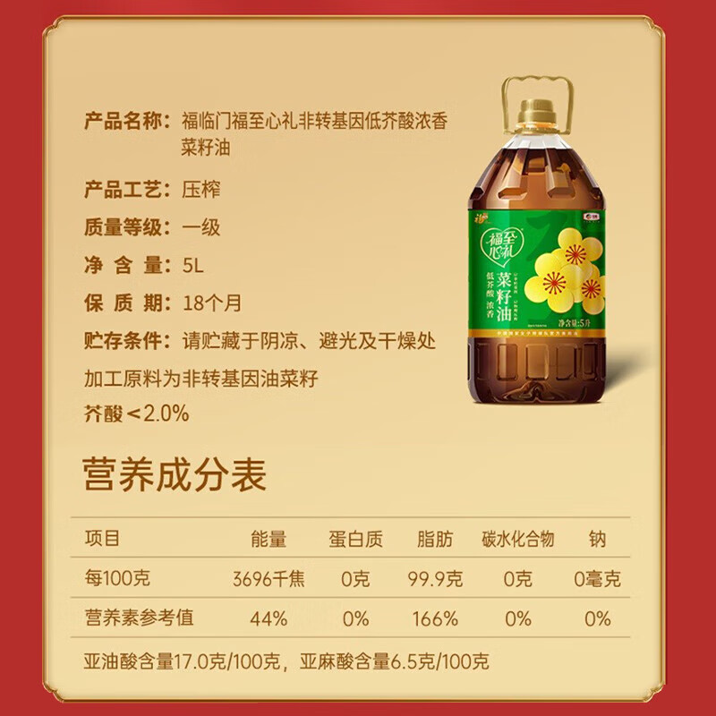福臨門福至心禮濃香菜籽油5L