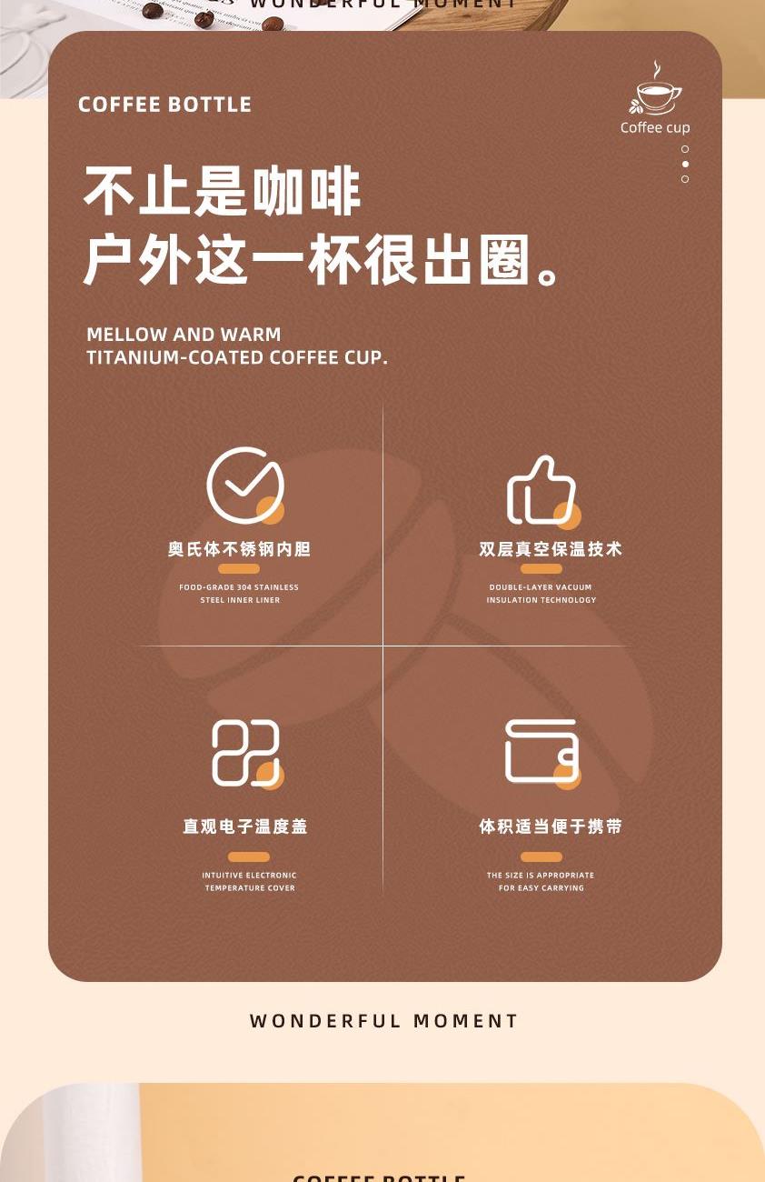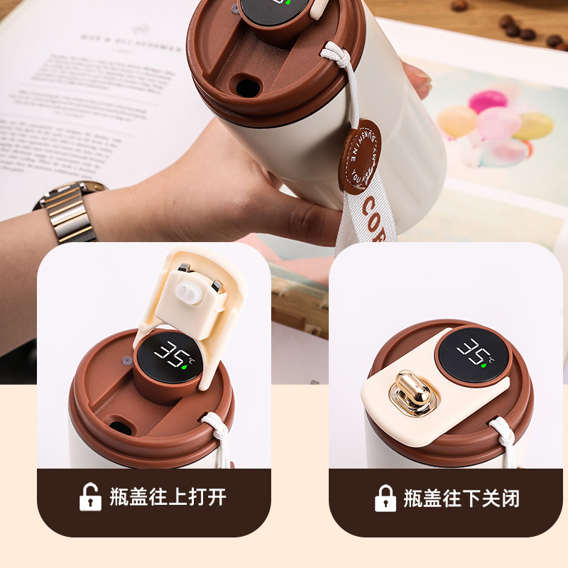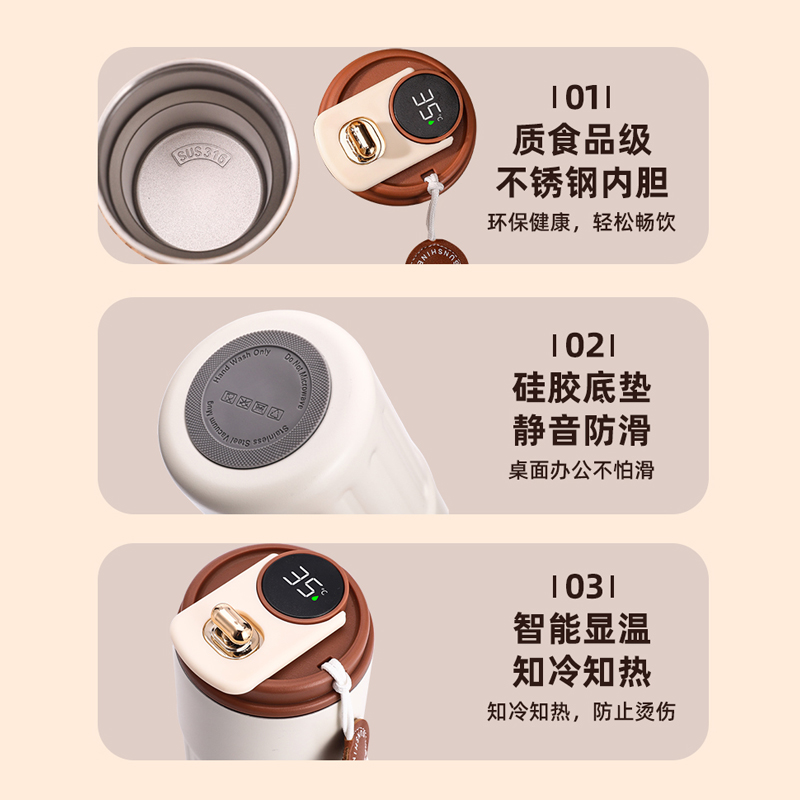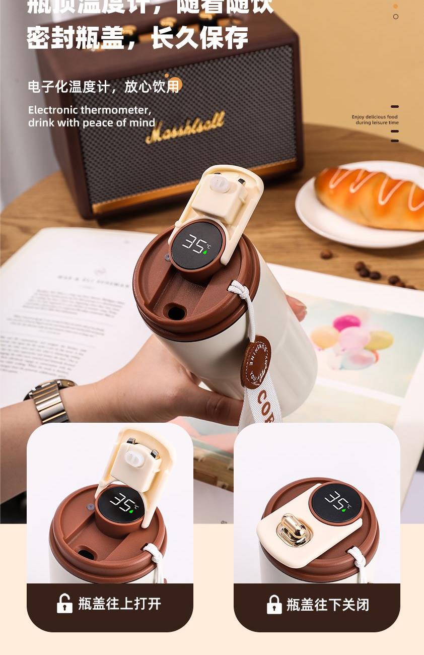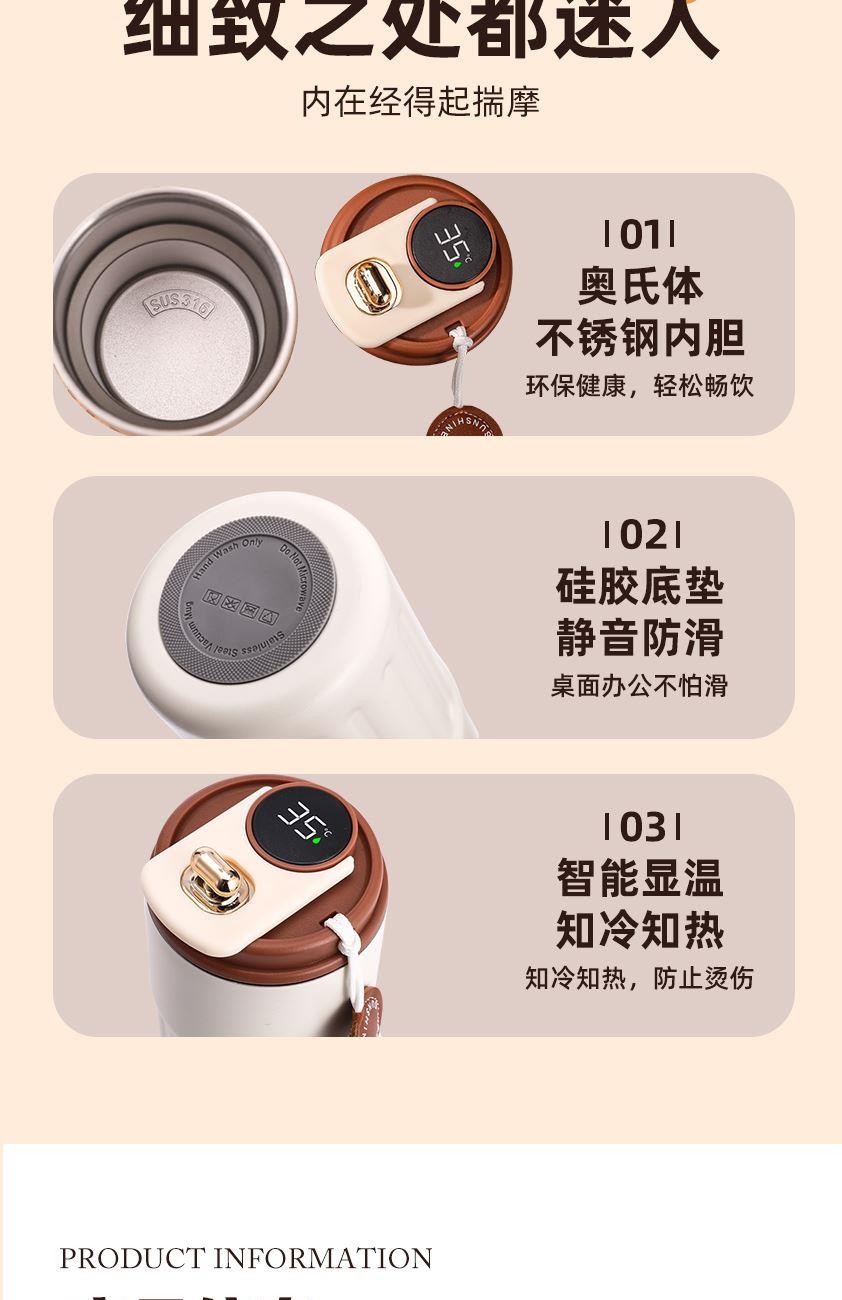 1、輕觸杯蓋頂部可智能顯溫,知冷知熱,防止?fàn)C傷;