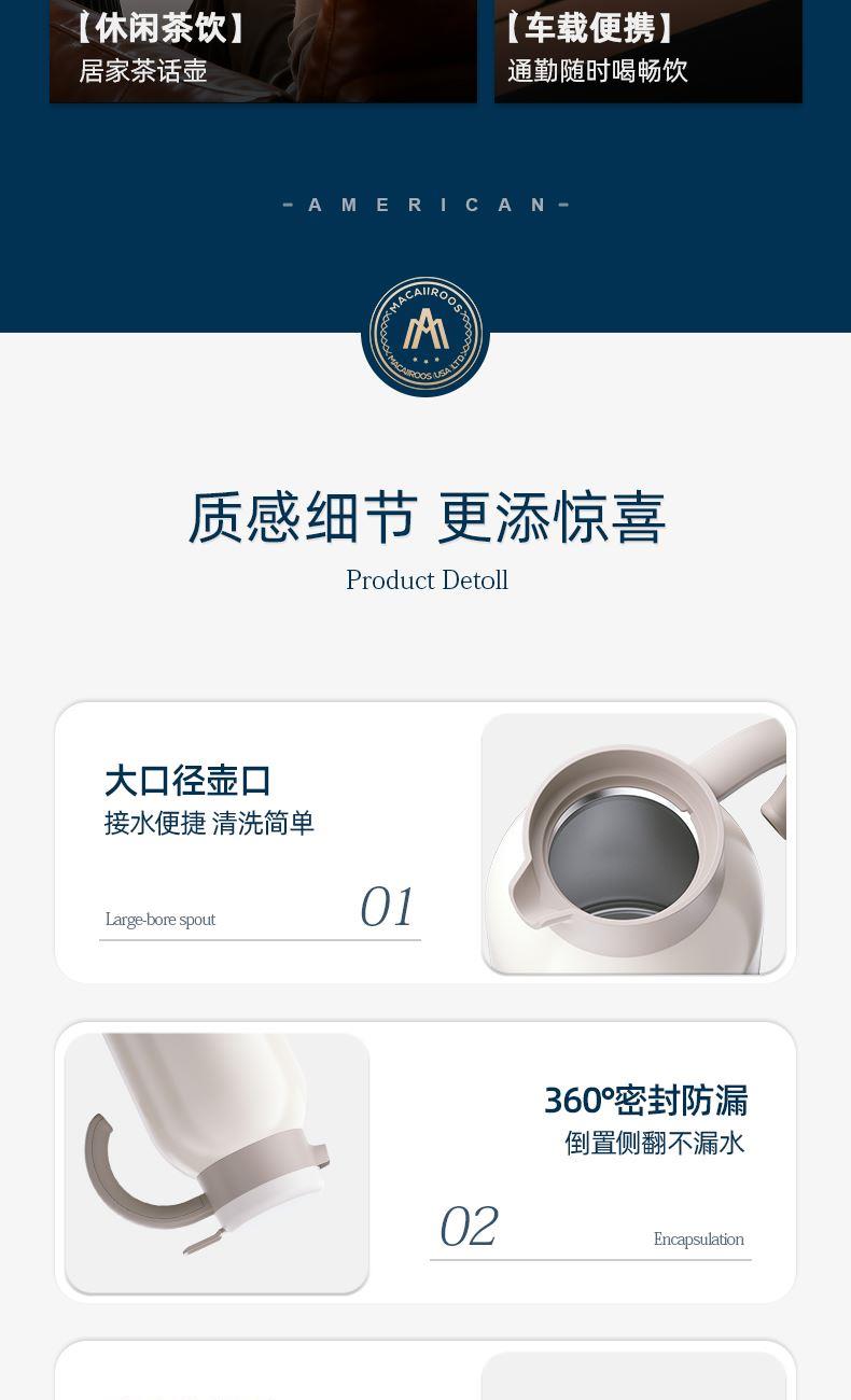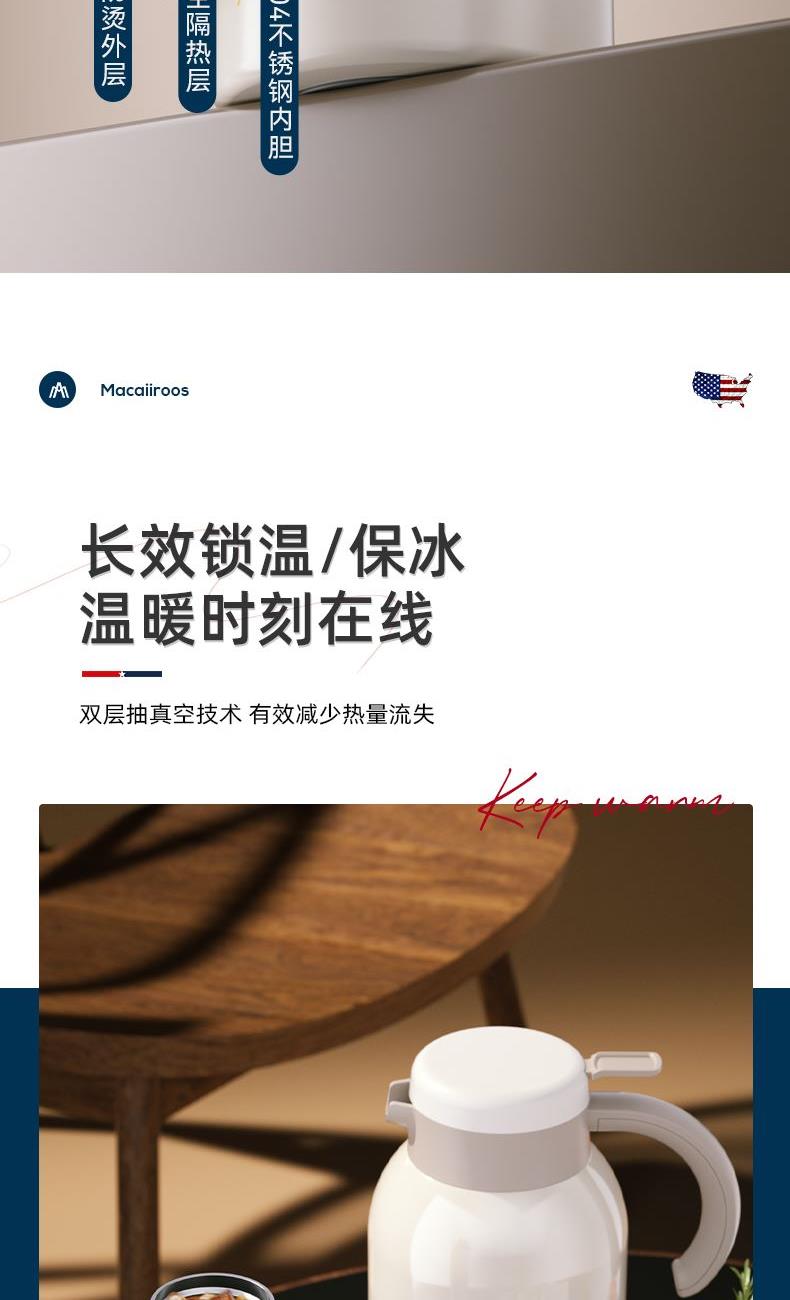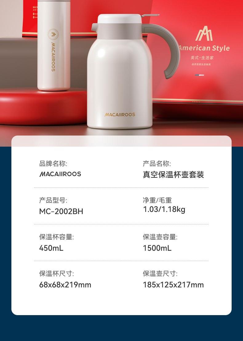 美國(guó)邁卡羅真空保溫杯壺套裝MC-2002BH