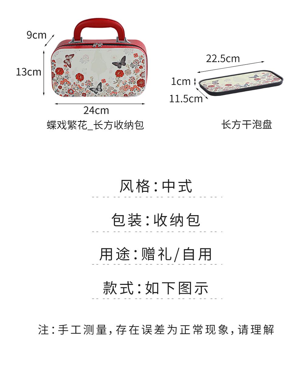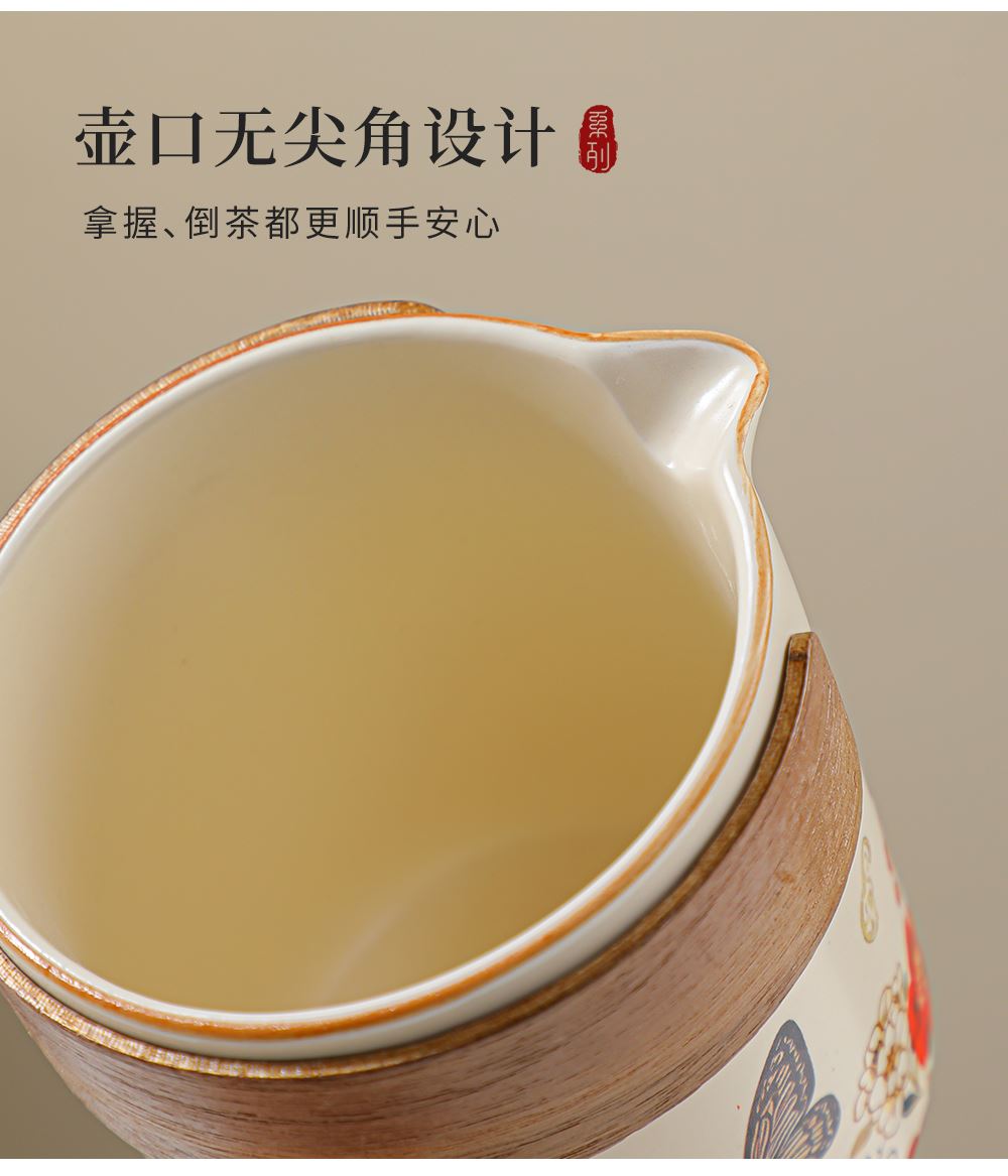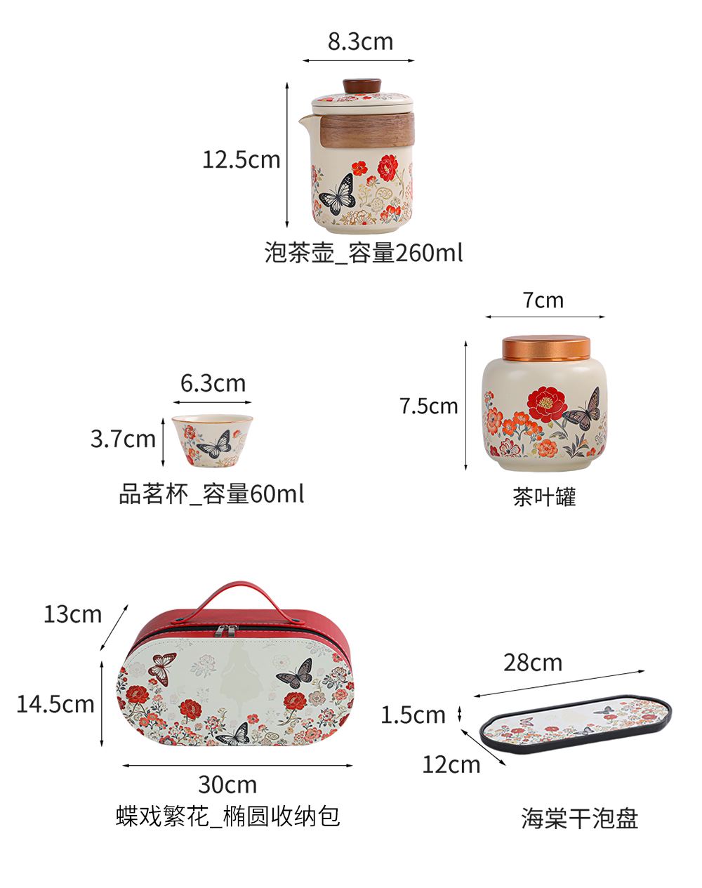 壺:12.5*8.3厘米 260ml 茶葉罐:7.5*7厘米 品茗杯:6.3*3.7厘米60ml 禮盒:30*14.5*13厘米 天然礦物釉,高溫?zé)茻o鉛鎘 ,花面清新,寓意美好,搭配禮盒包裝,自用贈禮兩宜。