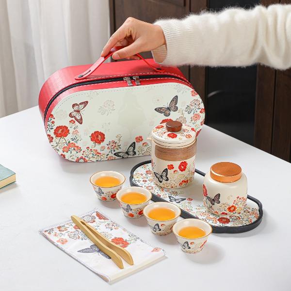 瓷語花香你若盛開蝴蝶自來旅行茶具 瓷語花香你若盛開蝴蝶自來旅行茶具