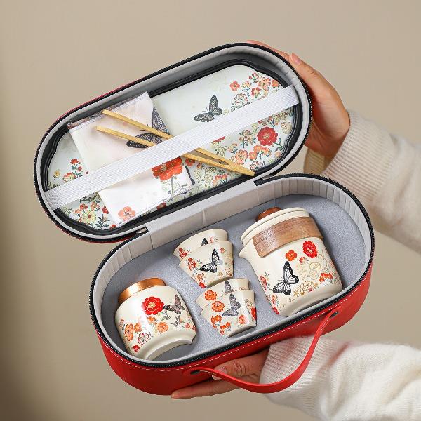 瓷語花香你若盛開蝴蝶自來旅行茶具 禮品已成功加入PPT!