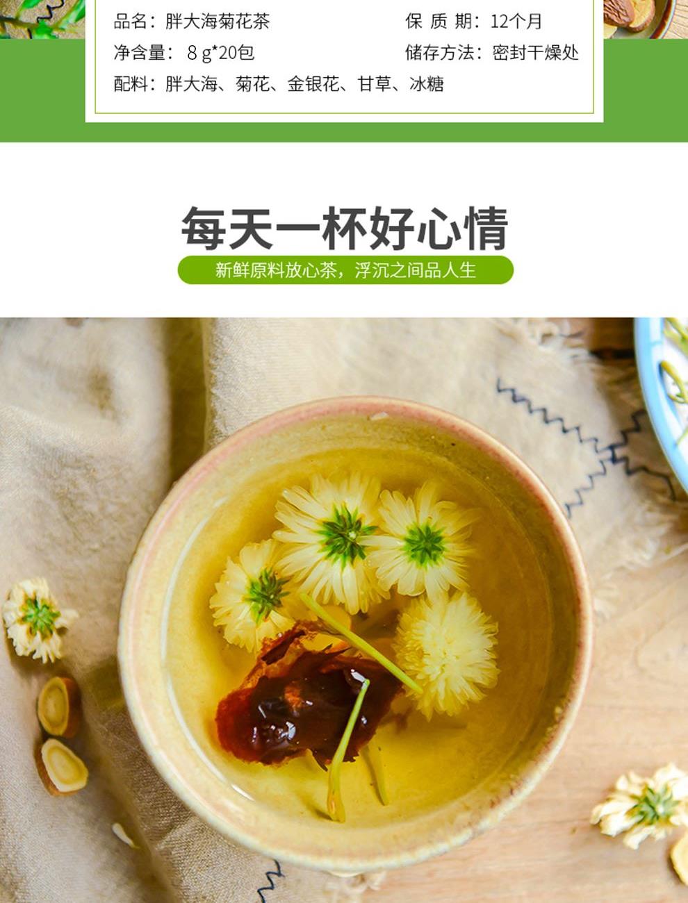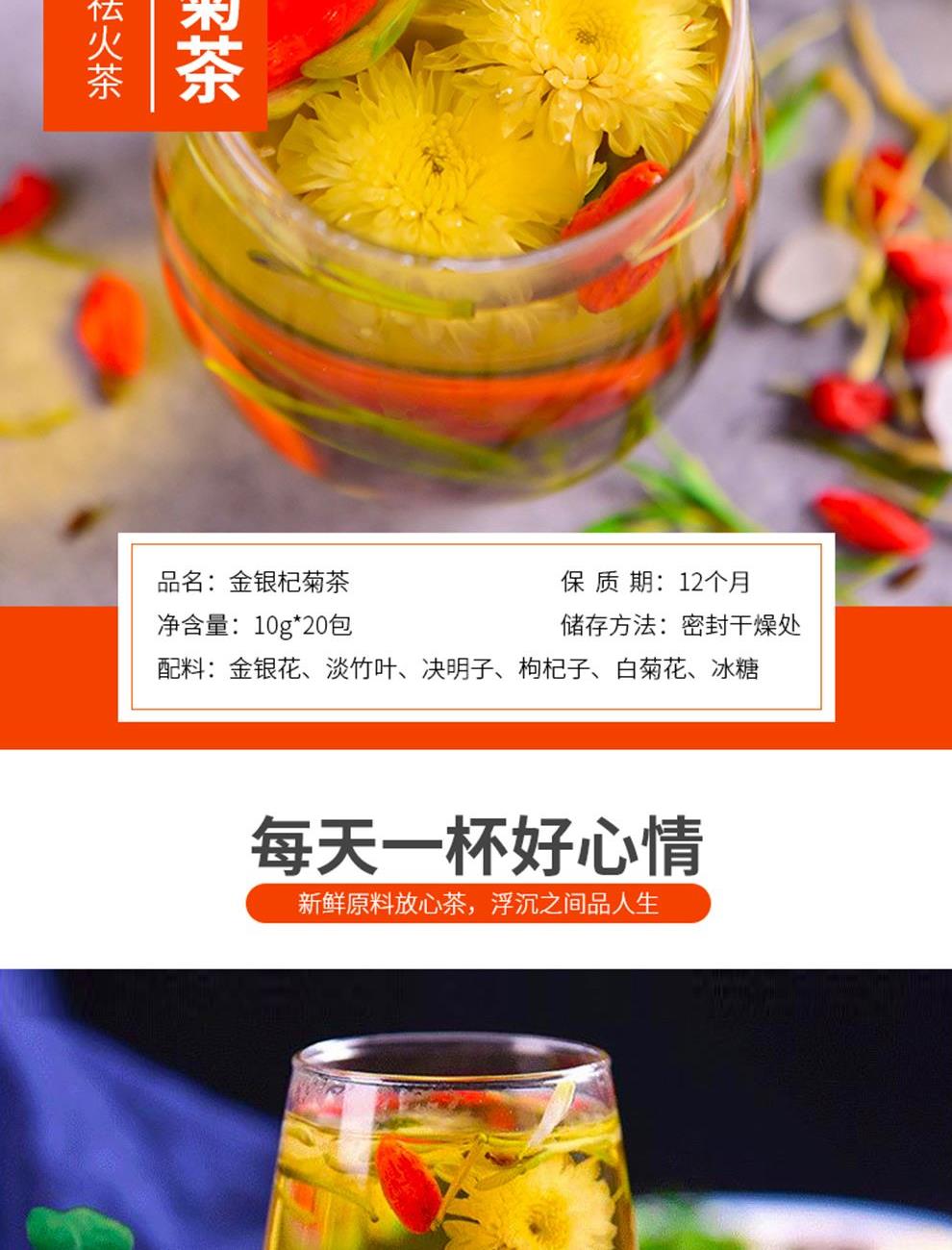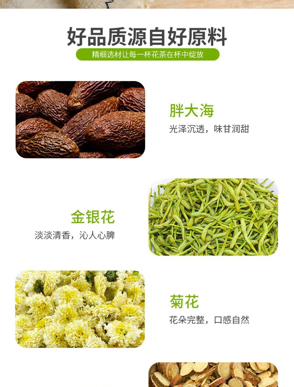 產(chǎn)品配置: 200g/盒*2(20g/包*20) 凈含量:400g 禮盒尺寸:32*8*27cm 夏日養(yǎng)生,袋泡先行!金銀杞菊茶搭配胖大海菊花茶,清熱潤(rùn)嗓又明目,為健康續(xù)航。