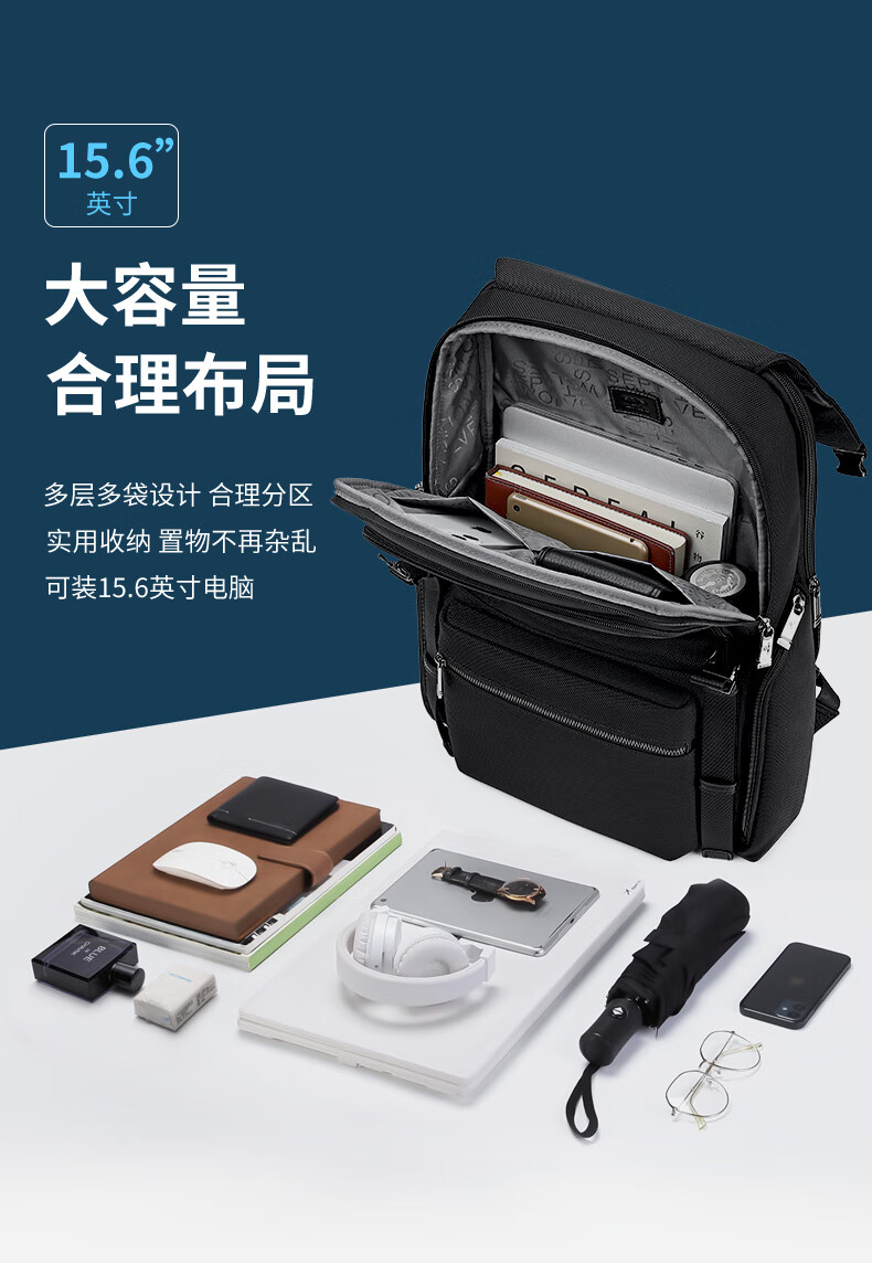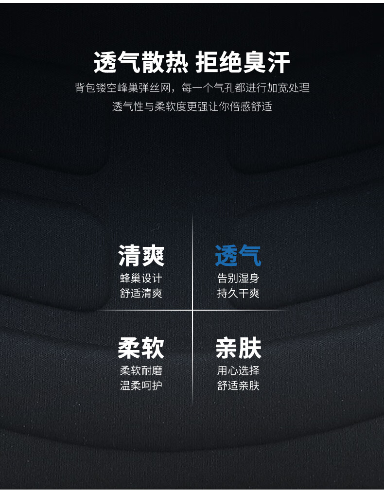 內(nèi)里大容裝載,多層收納空間,滿足多樣收納需求,輕裝出行,采用高密度織物面料,防刮耐用,防潑賤,輕松應(yīng)對潑水,3D透氣蜂窩設(shè)計,柔軟減壓肩帶