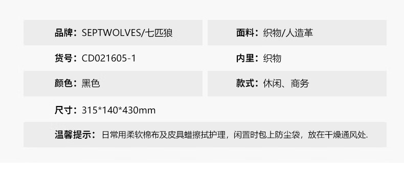 七匹狼雙肩包男商務(wù)出差背包休閑CA021605-1