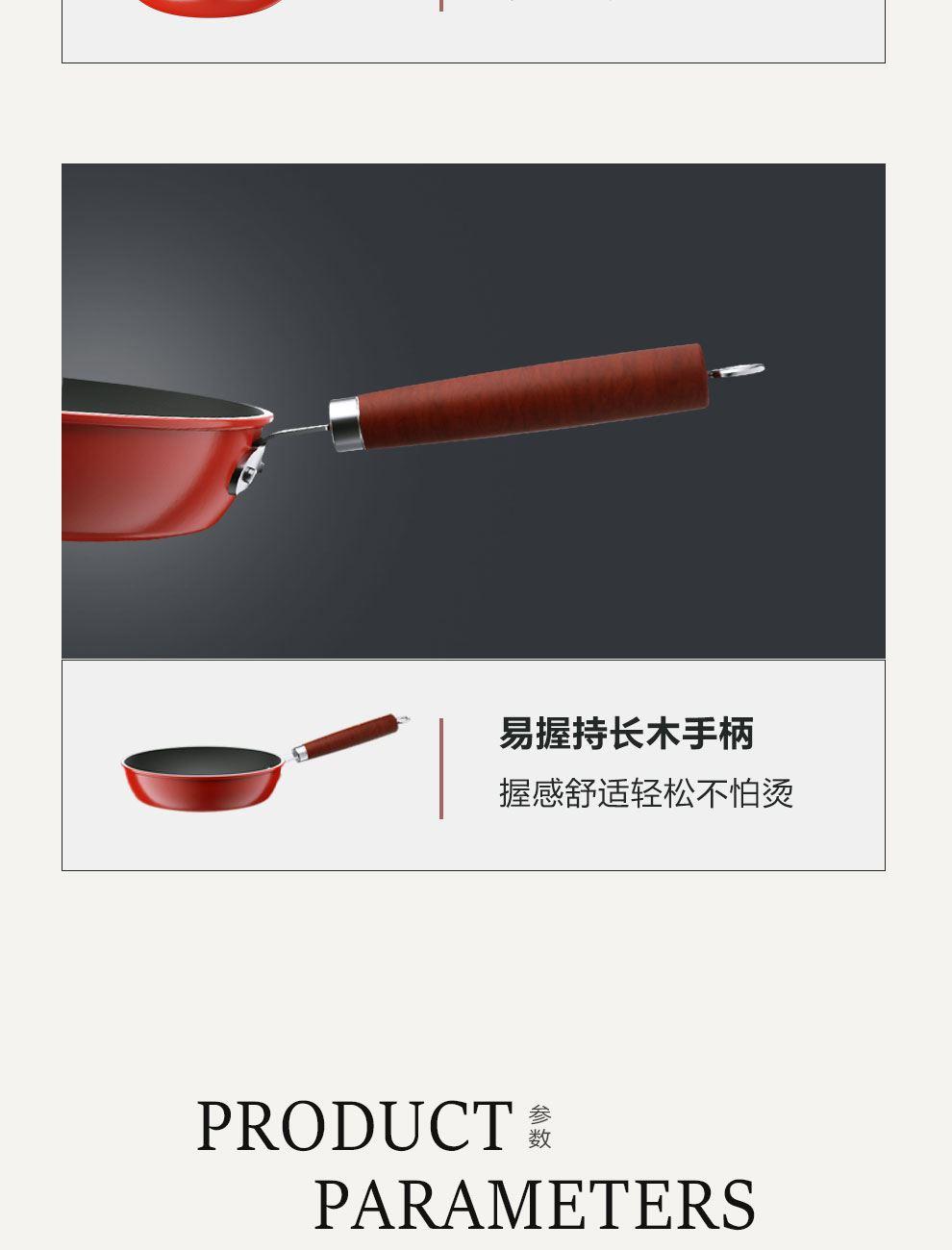 產(chǎn)品口徑:30/22/22cm 產(chǎn)品材質(zhì):精鐵 產(chǎn)品凈重:3.0kg 產(chǎn)品毛重:4.2kg 整箱重量:26.4kg 裝 箱 數(shù):6臺(tái)/箱 精鐵成型精鐵一體成型、加厚口沿 不粘涂層食品級(jí)不粘涂層鍋體 實(shí)木手柄尾部帶掛孔,實(shí)木手柄 高溫烤漆鍋體鍋身外壁采用高溫烤漆工藝
