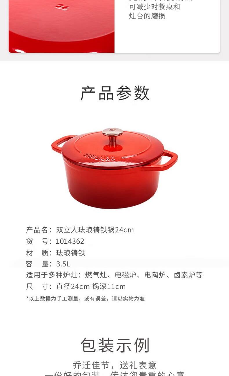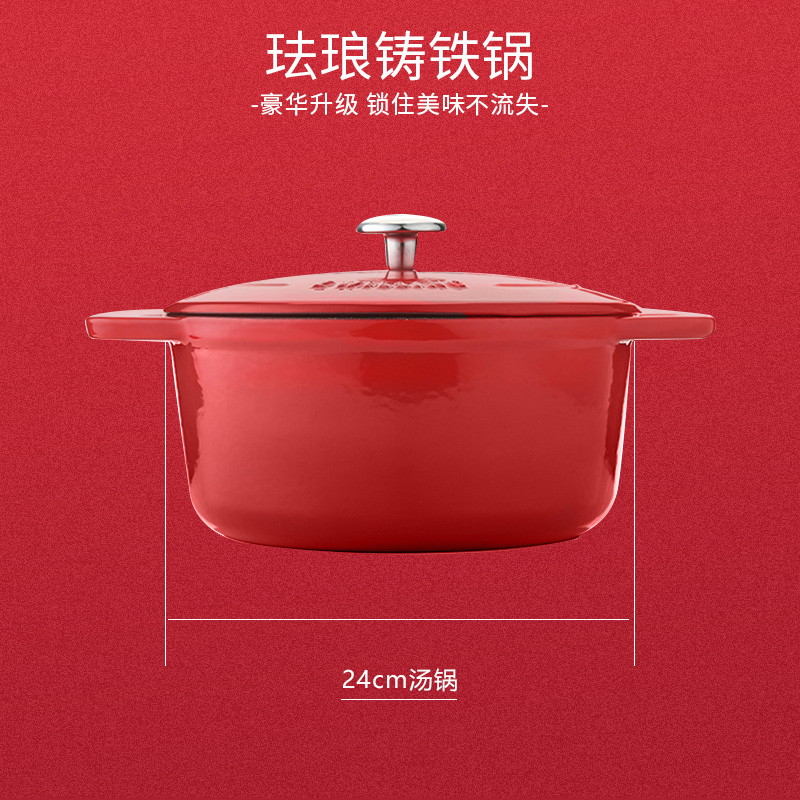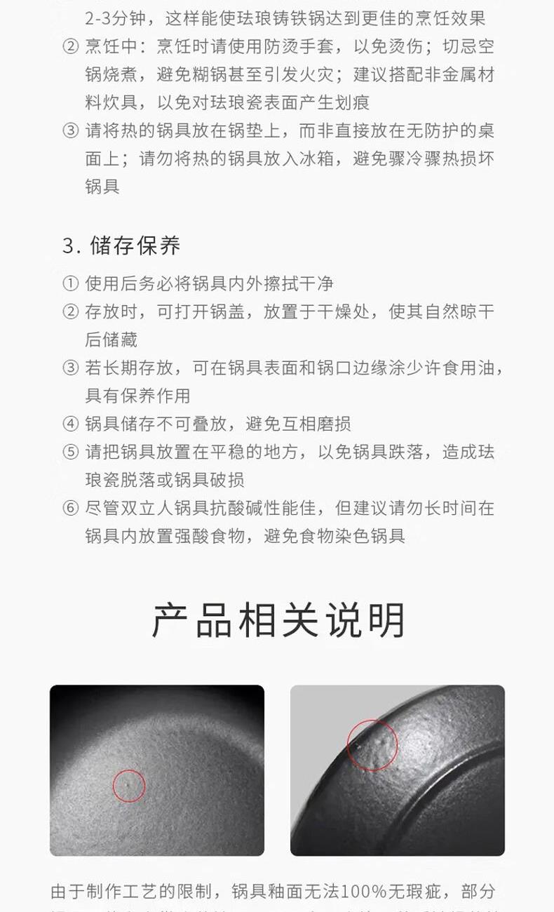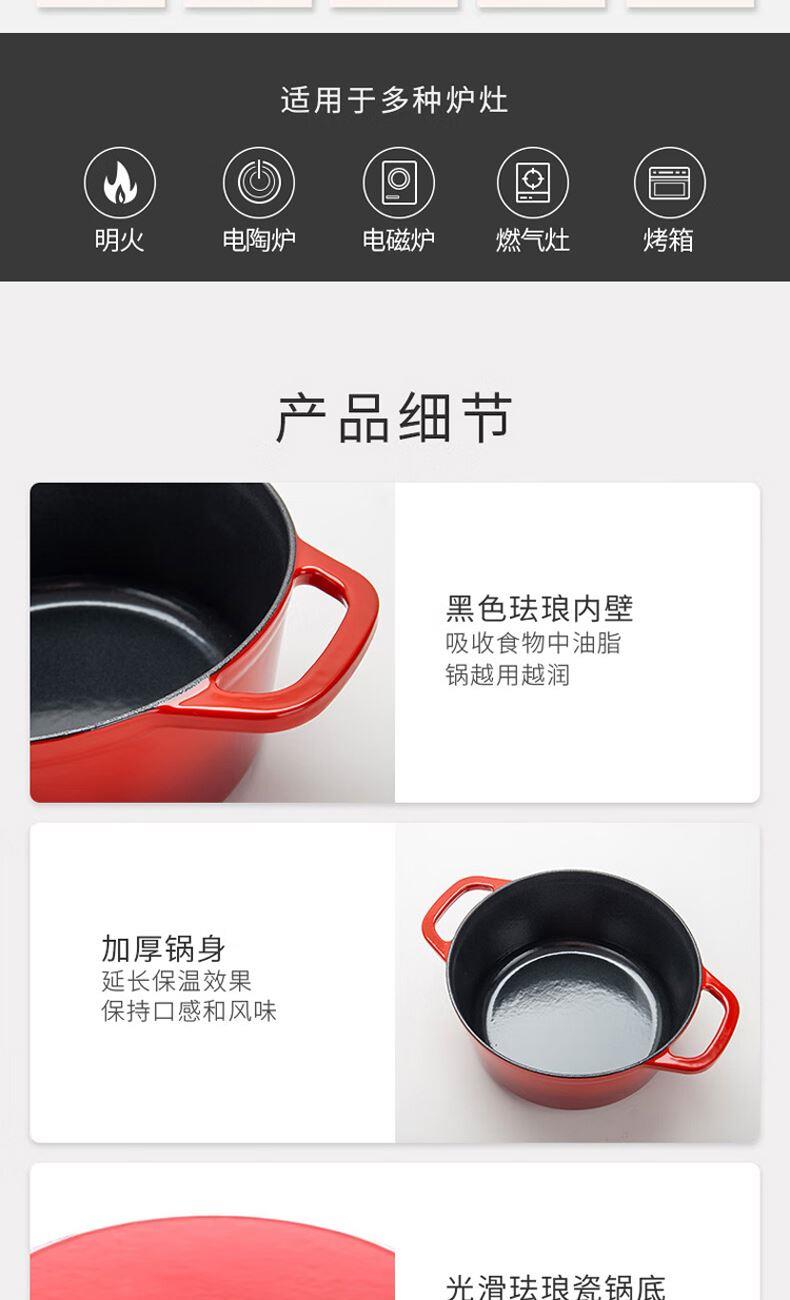 5.琺瑯瓷鍋底,光滑的琺瑯瓷鍋底,對(duì)灶臺(tái)和餐桌不會(huì)產(chǎn)生磨損,加厚設(shè)計(jì),在烹飪和用餐過程中平穩(wěn)自如